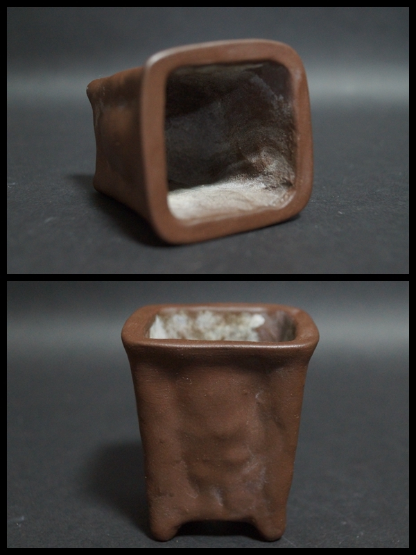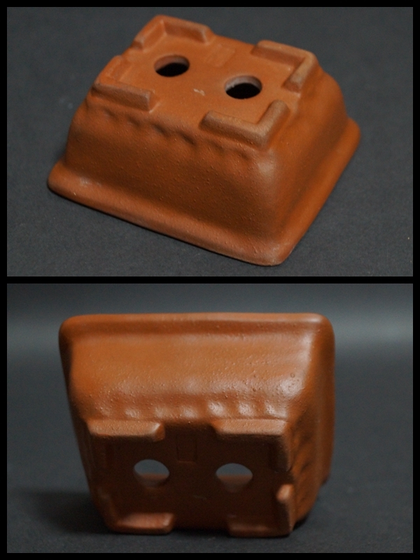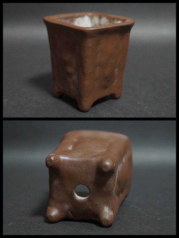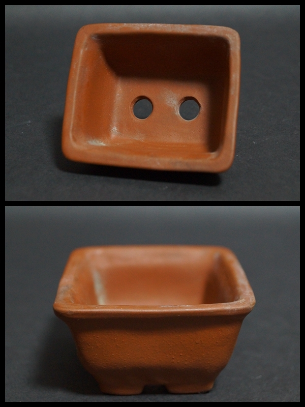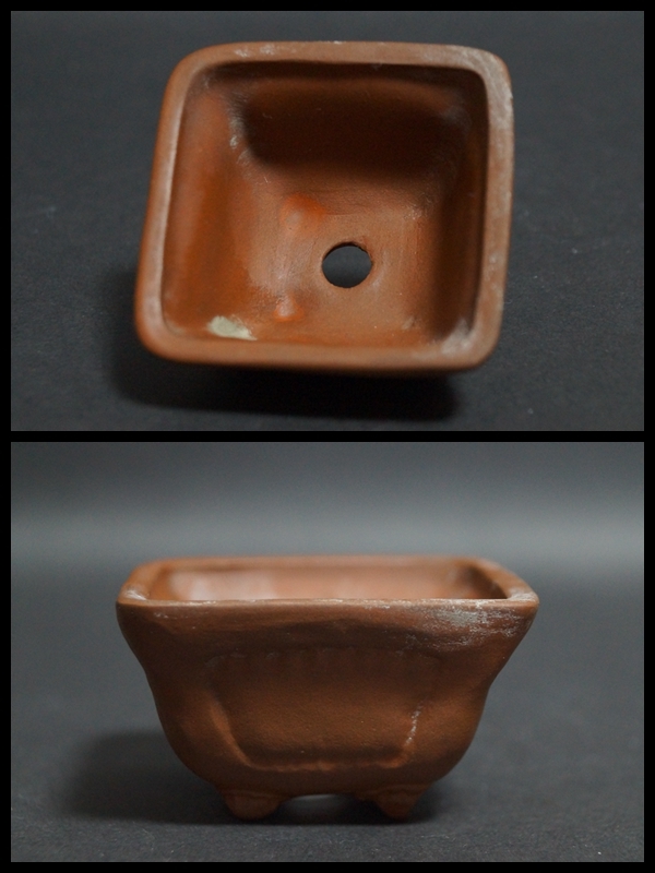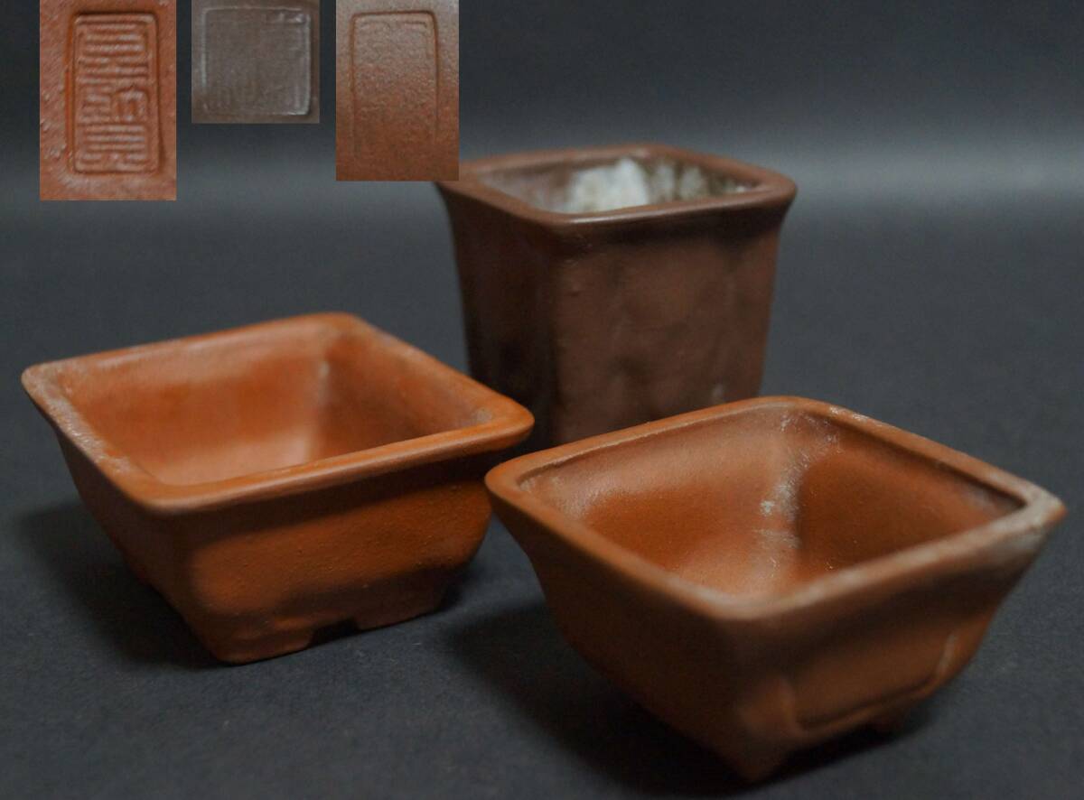 【寂】朱泥 鉢 正方鉢 長方鉢 小振り 盆栽鉢 植木鉢 三点セット 在銘 s71001