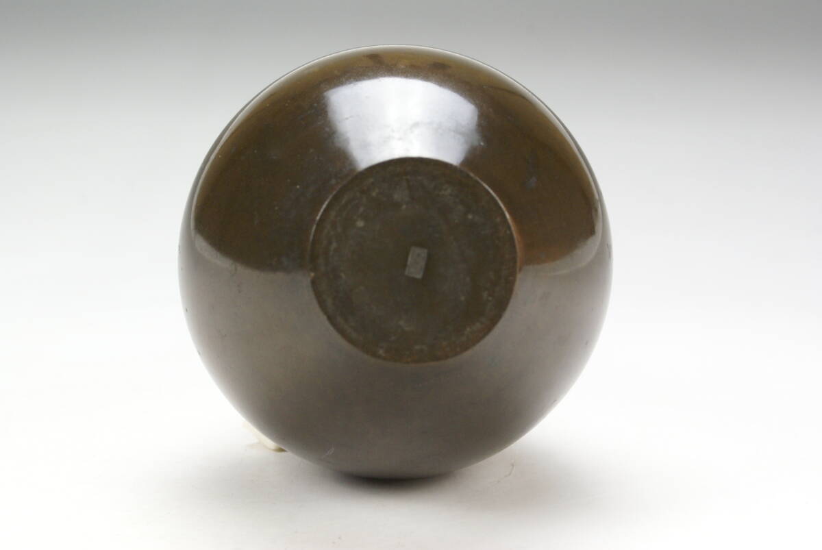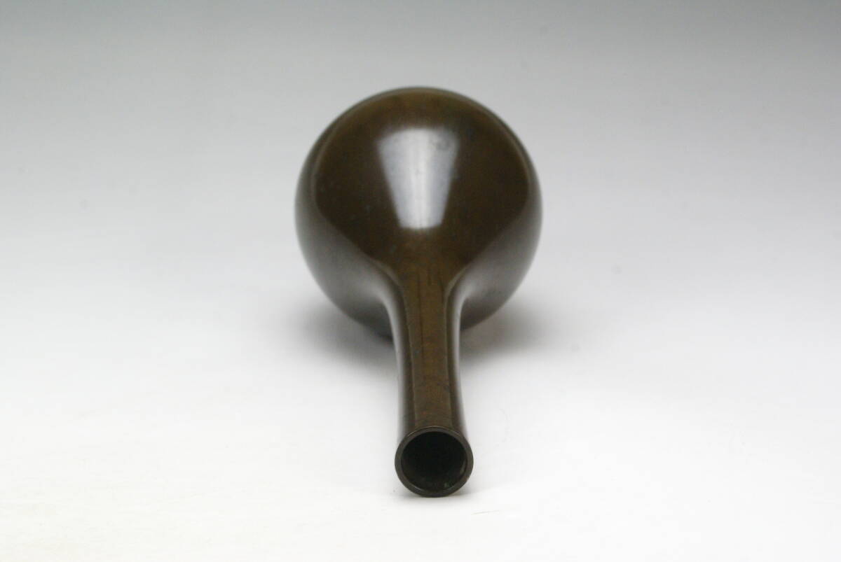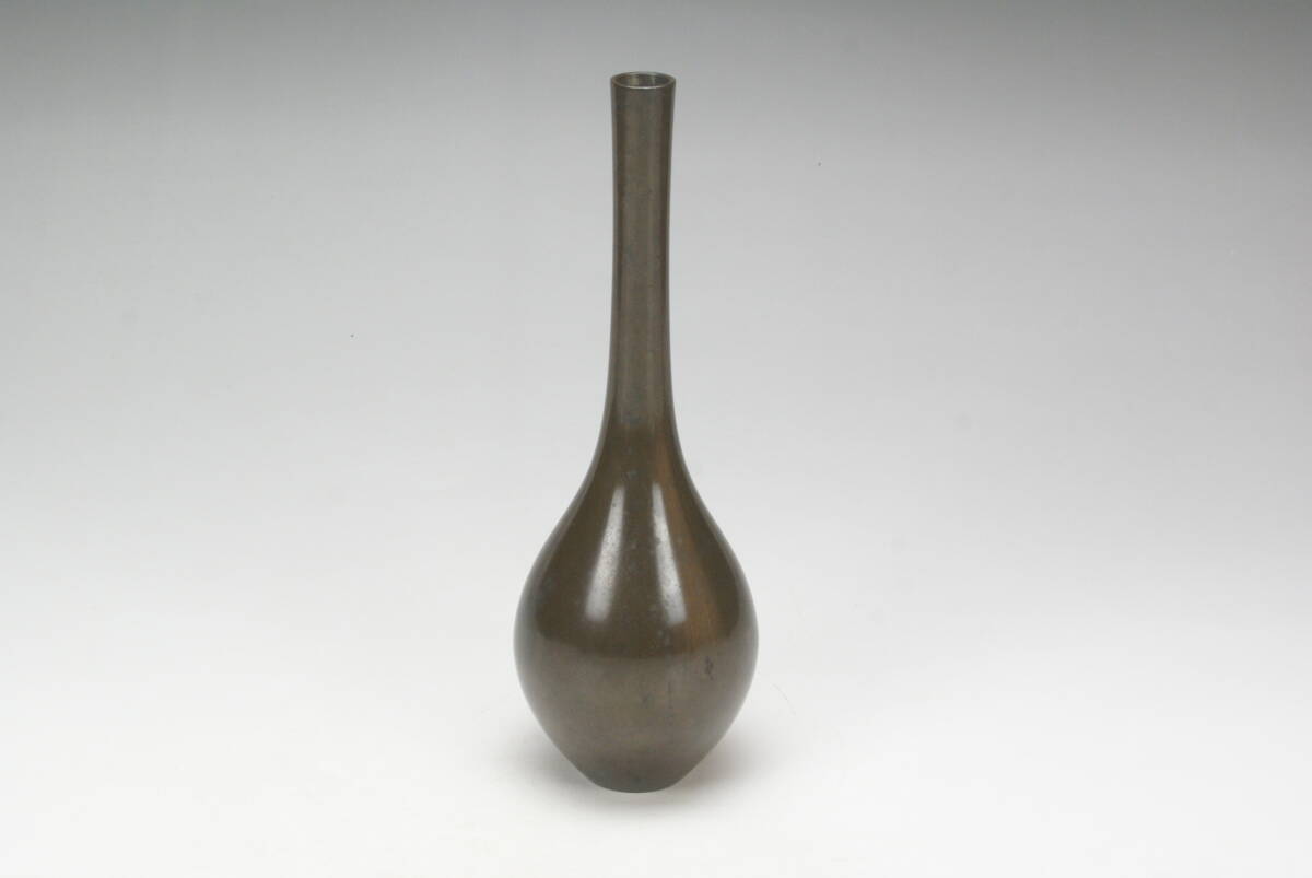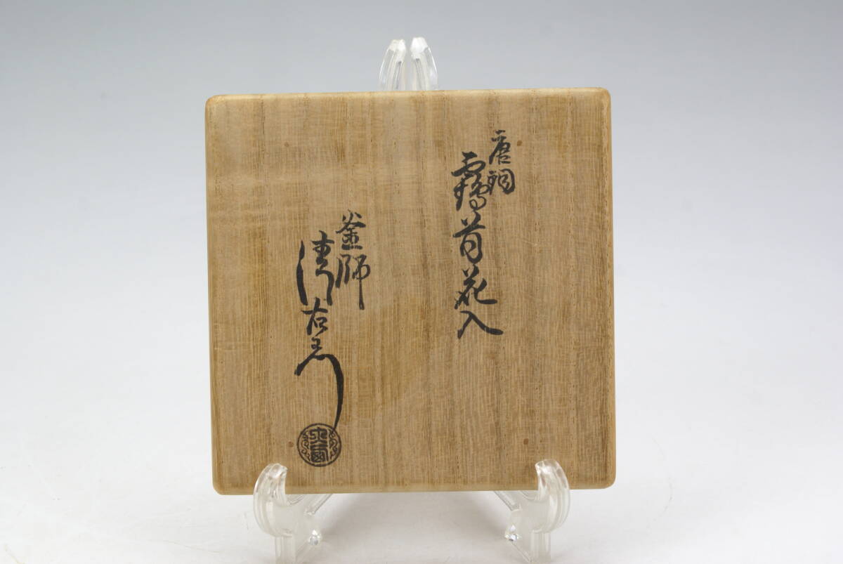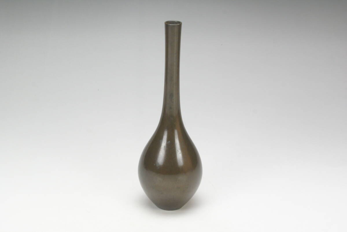 【湖美】大西清右衛門 唐銅 鶴首 花入 共箱 花器 曽呂利