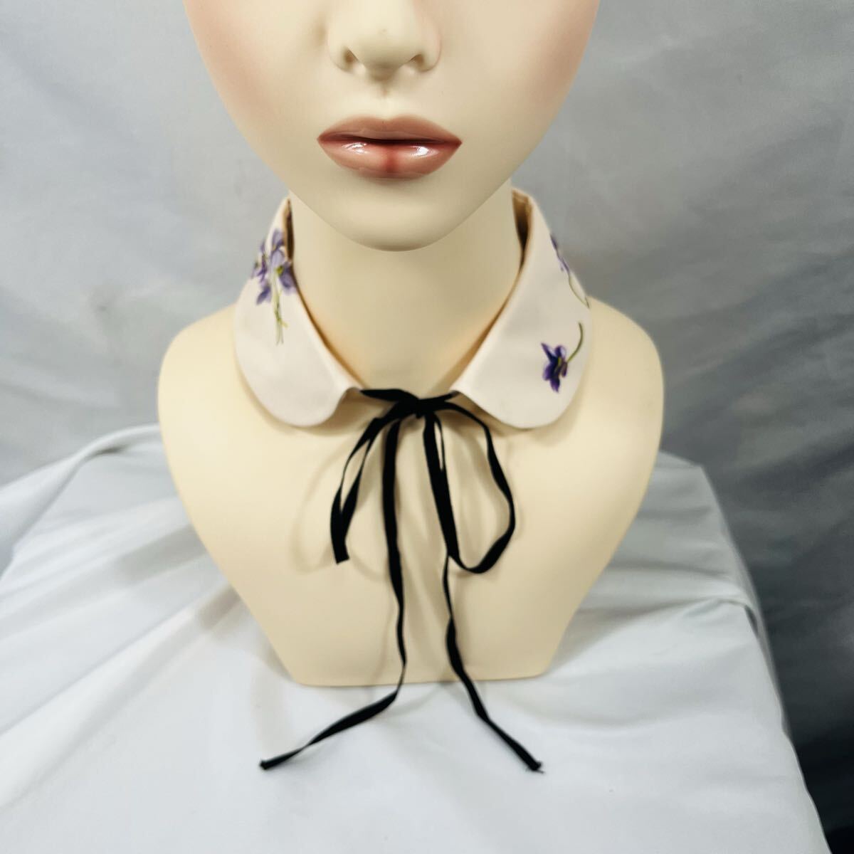 ・花柄デザインのクリーム色の襟、黒色のリボン付き。