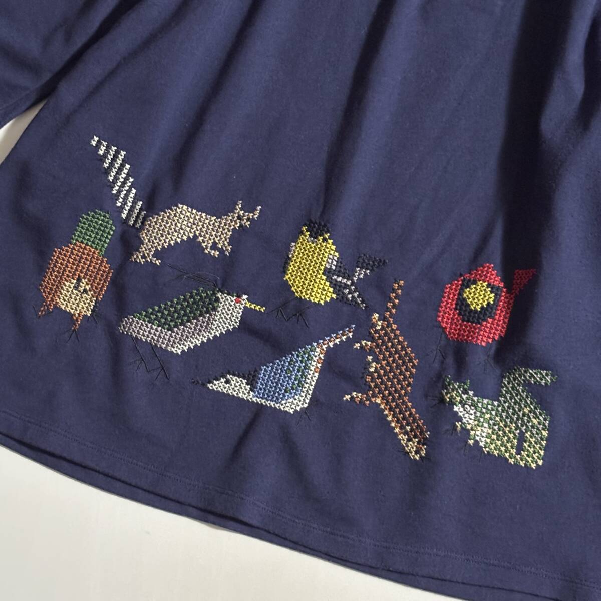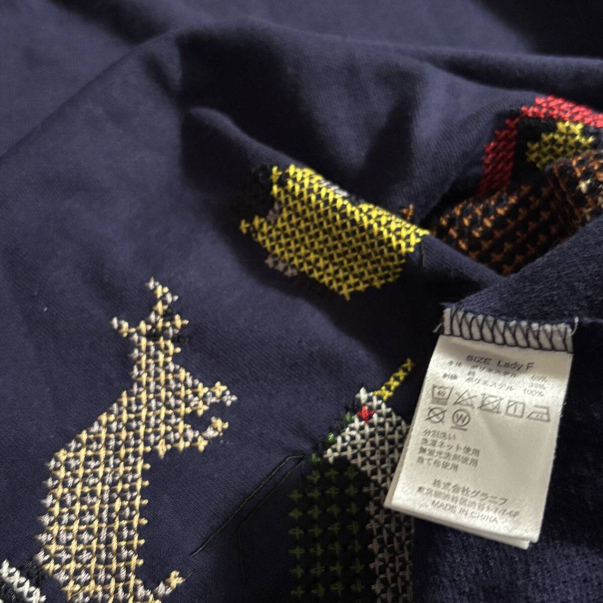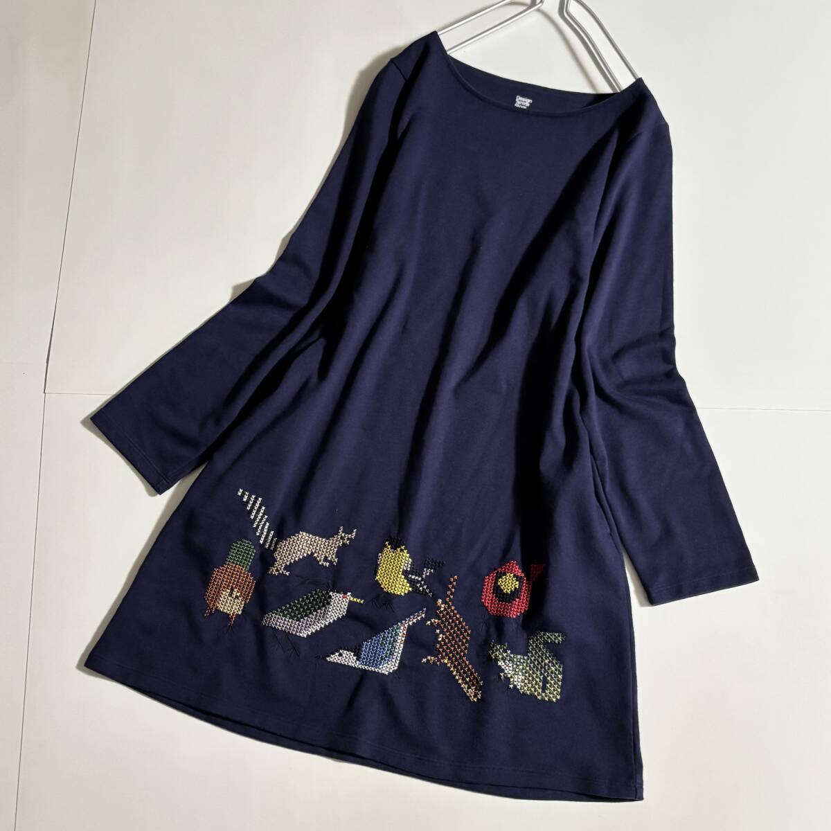 graniph グラニフ ゆったりサイズF // アニマル・動物柄刺しゅう 濃紺系ワンピース ③