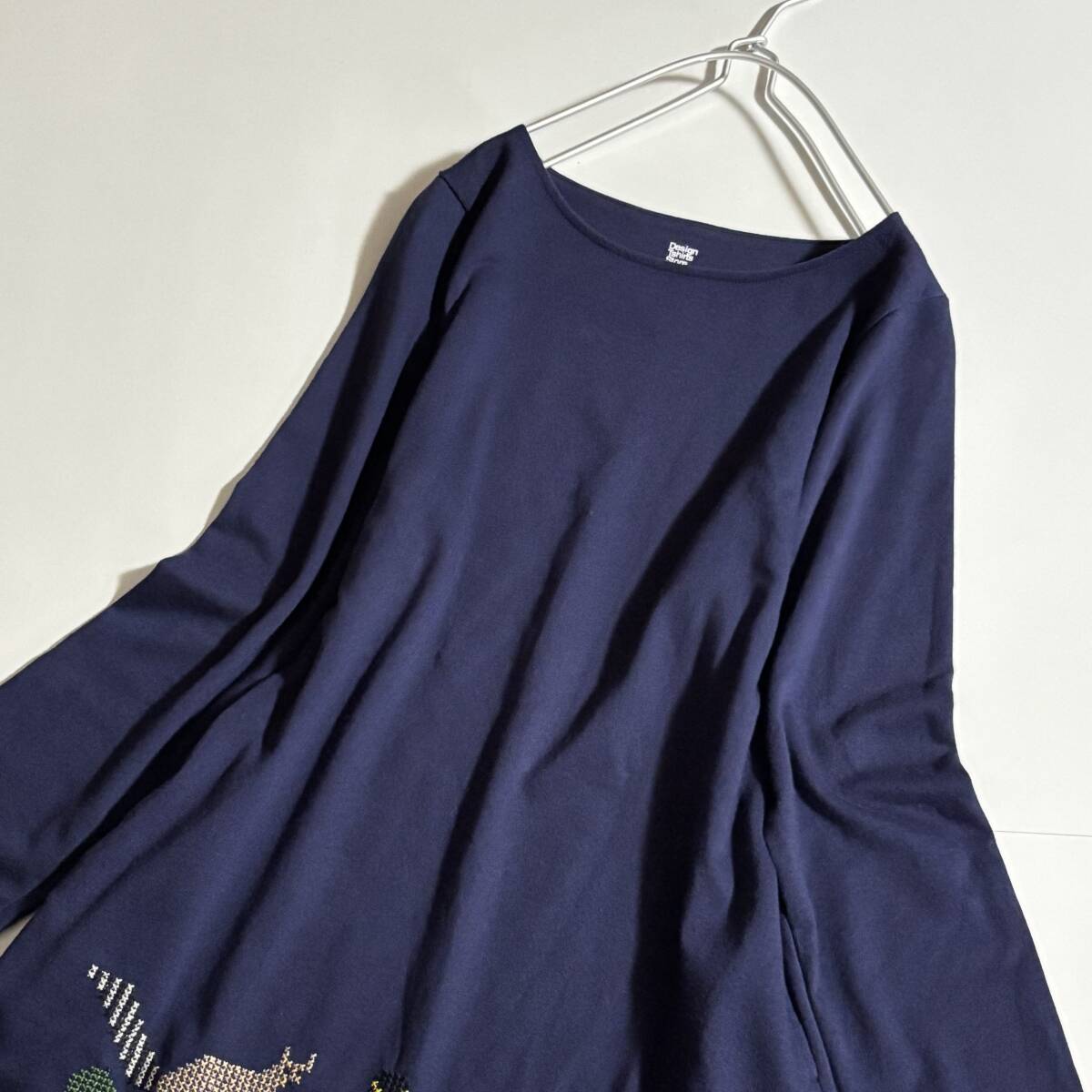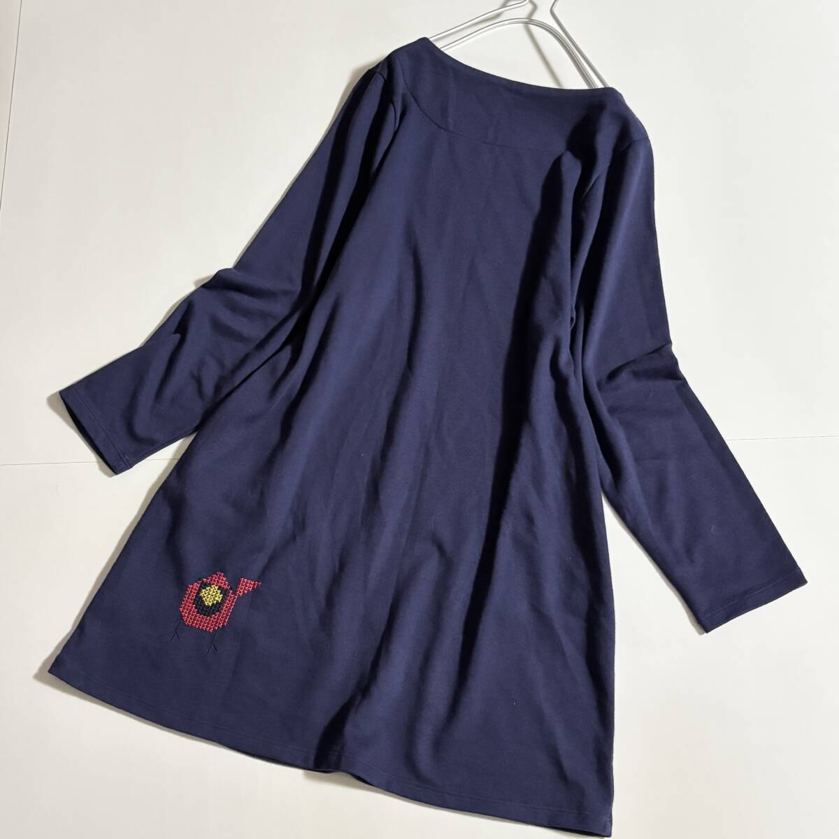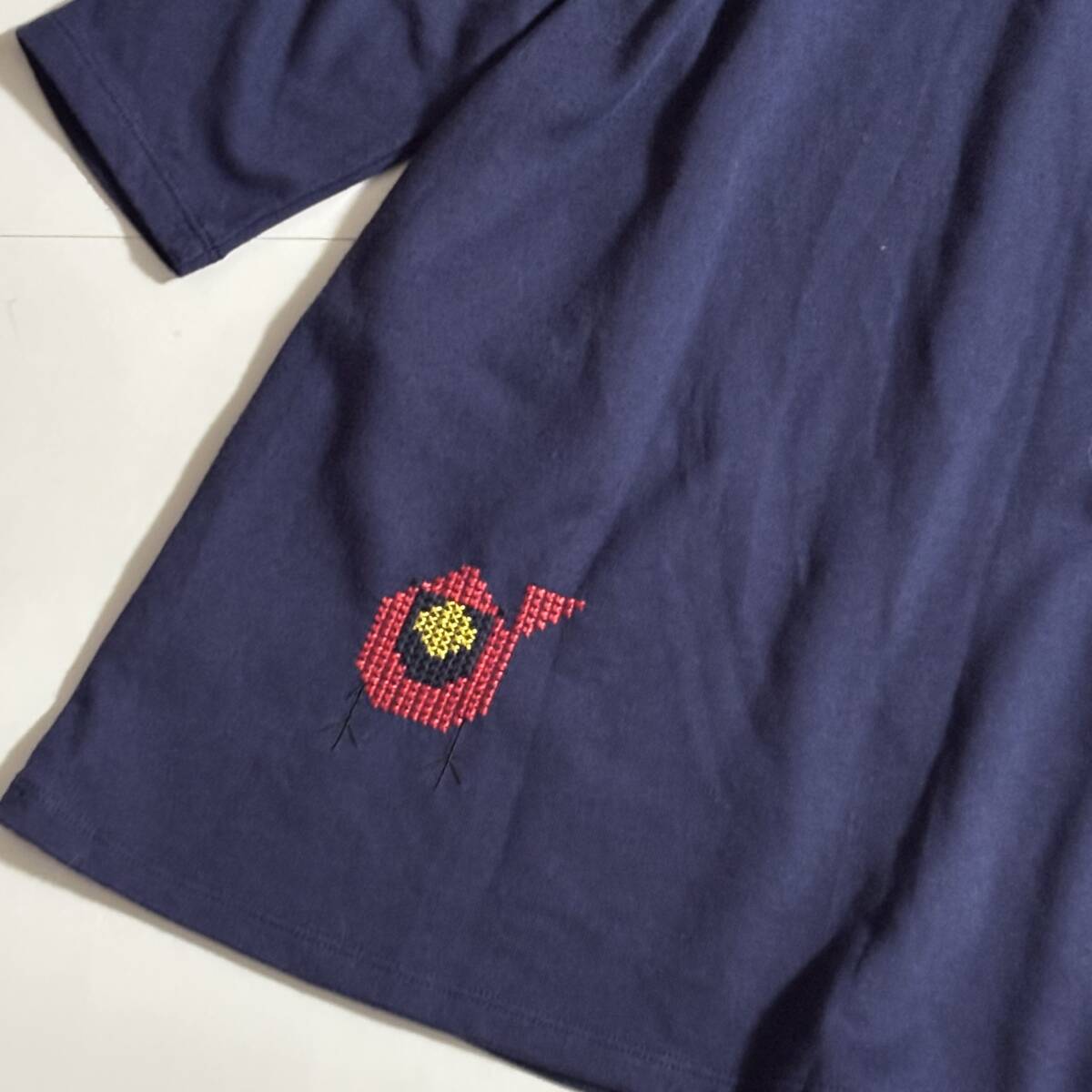 graniph グラニフ ゆったりサイズF // アニマル・動物柄刺しゅう 濃紺系ワンピース ③