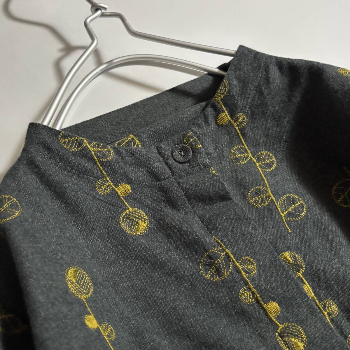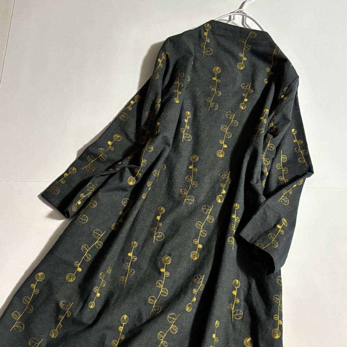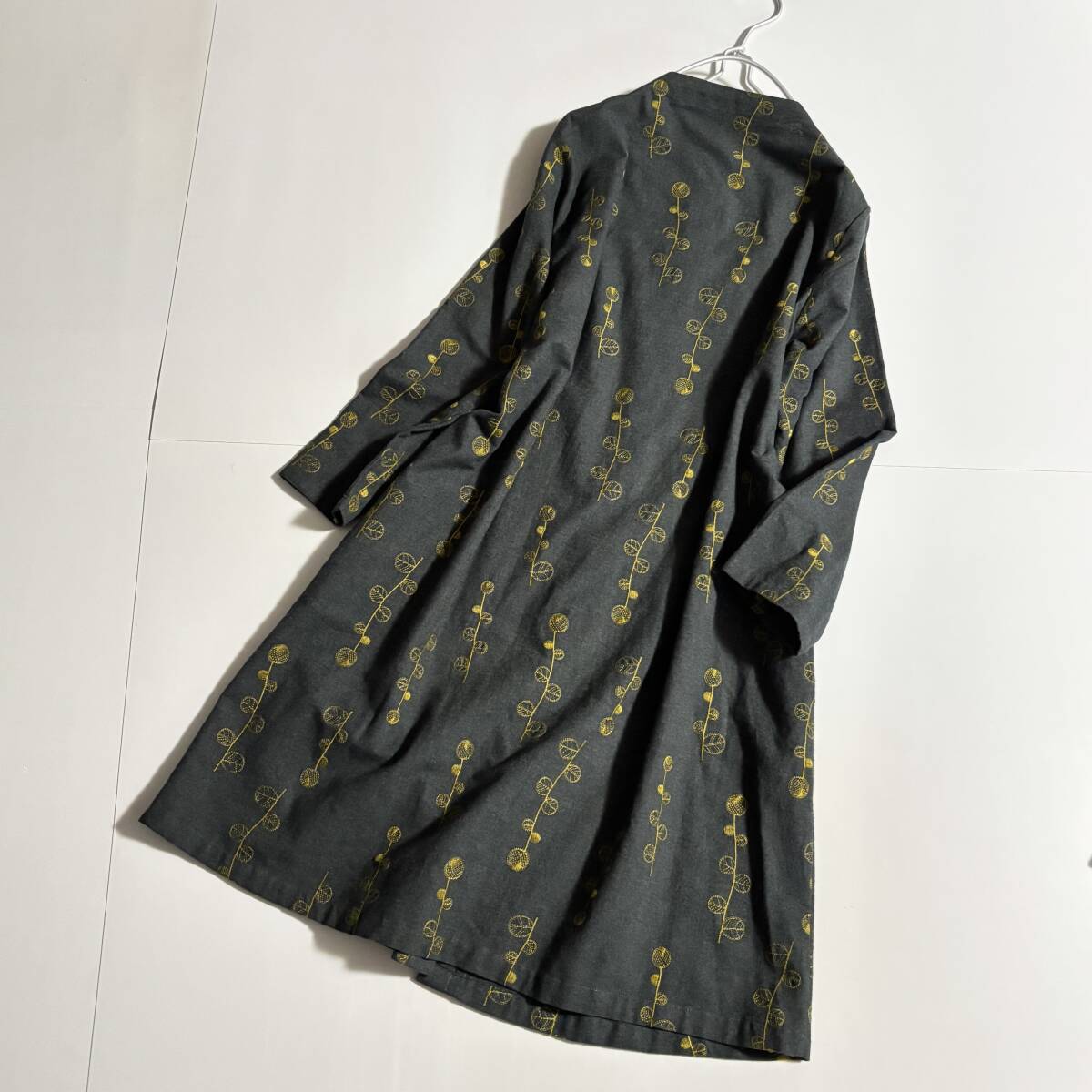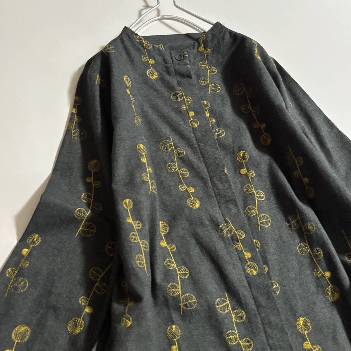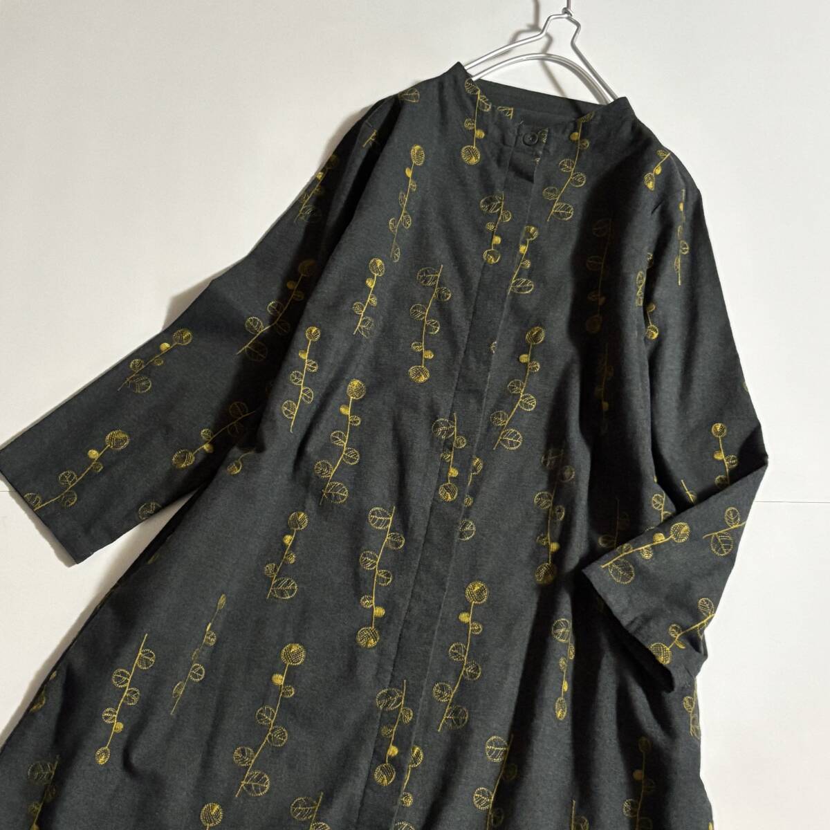 on y vua オニヴァ ゆったりサイズF // モスグレー系 植物柄刺しゅう ロングブラウス・ワンピース ③