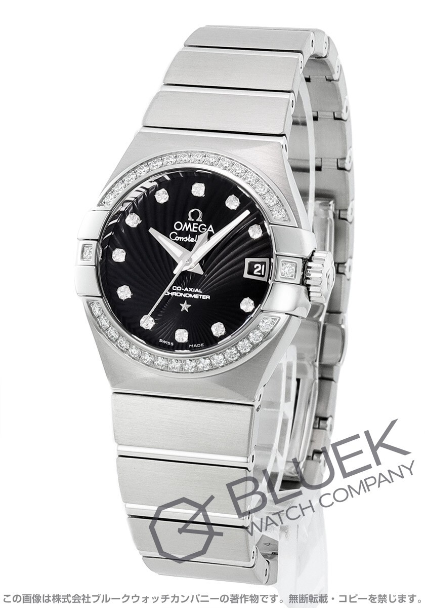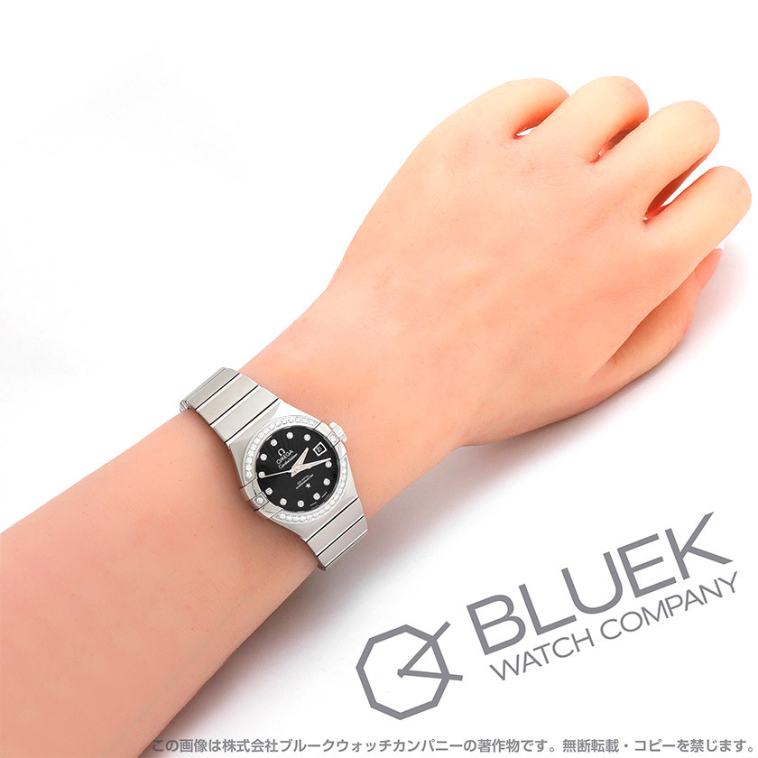“4つの爪”が特徴のベゼルとブラックダイヤルにダイヤモンドインデックスを配置した上品なコンステレーションは、ダイヤモンドが女性をラグジュアリーに彩るオメガ人気のタイムピース。女性用には珍しいクロノメーター認定自動巻きコーアクシャルキャリバー8520(50時間パワーリザーブ)を搭載。指針には夜光塗料が塗布されて暗所でも視認性を発揮します。中でも6時の星から放たれたスーパールミノバ模様がダイヤモンドの煌めきを鮮やかに引き立てるこのモデルは、プッシュ式の両開きバックルやケース裏から機械が鑑賞できるシースルーバックも魅力です。 |