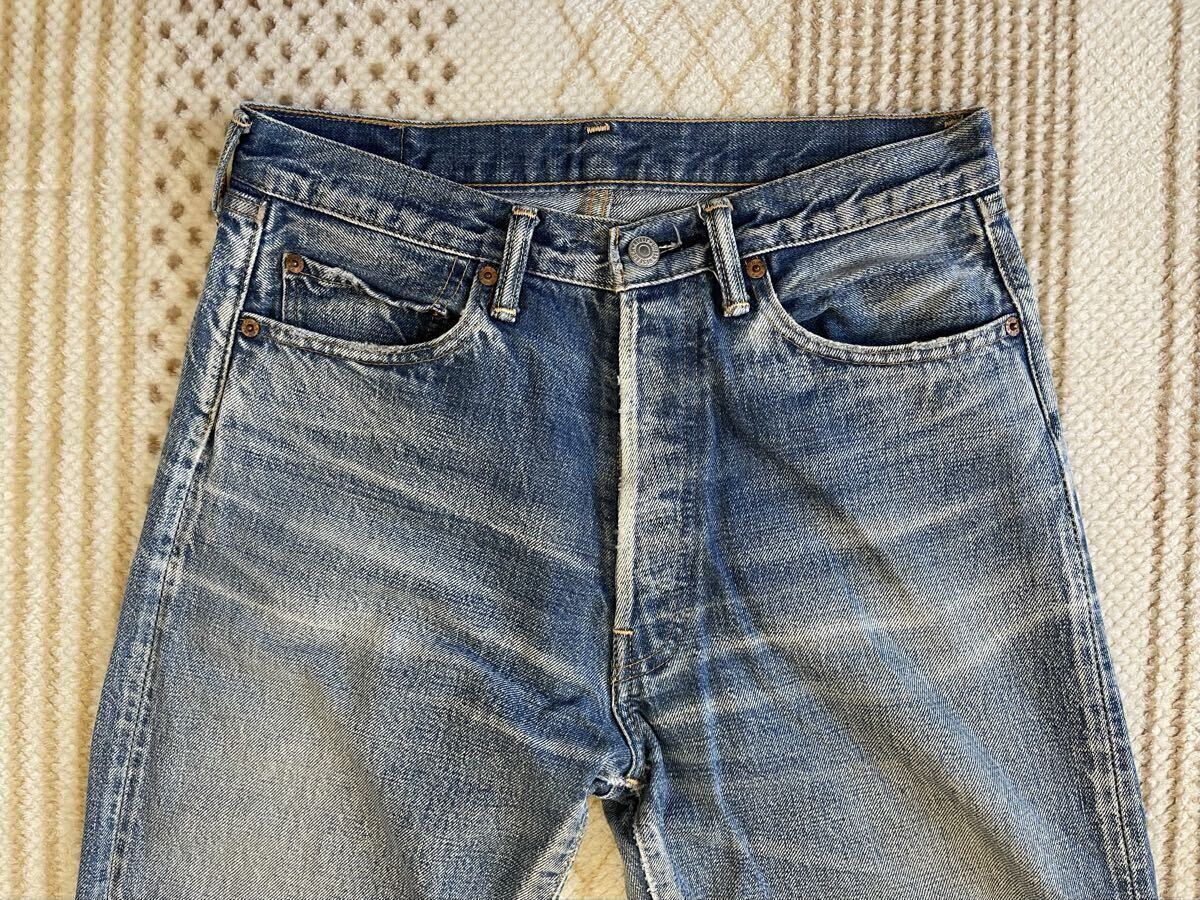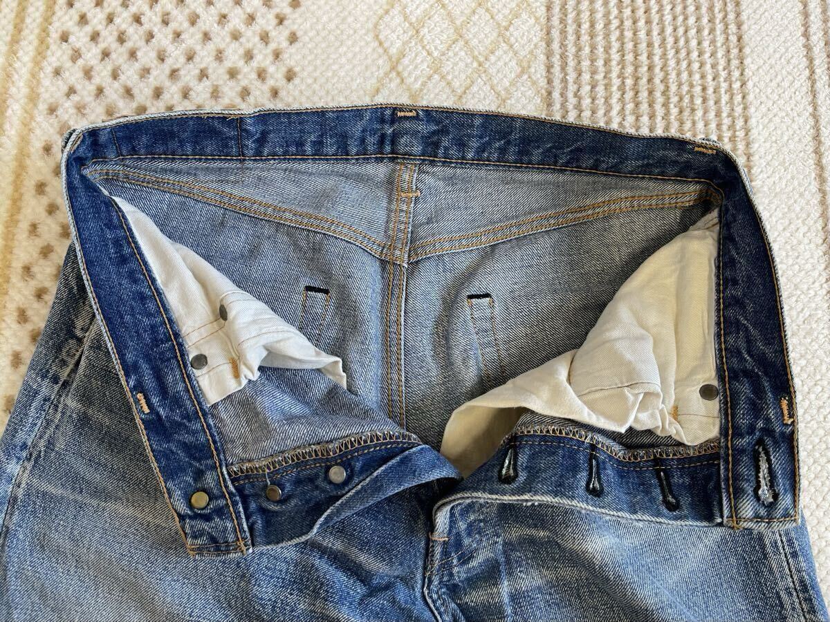 ボタンフライ周辺や股部分に生地のスレが見られます