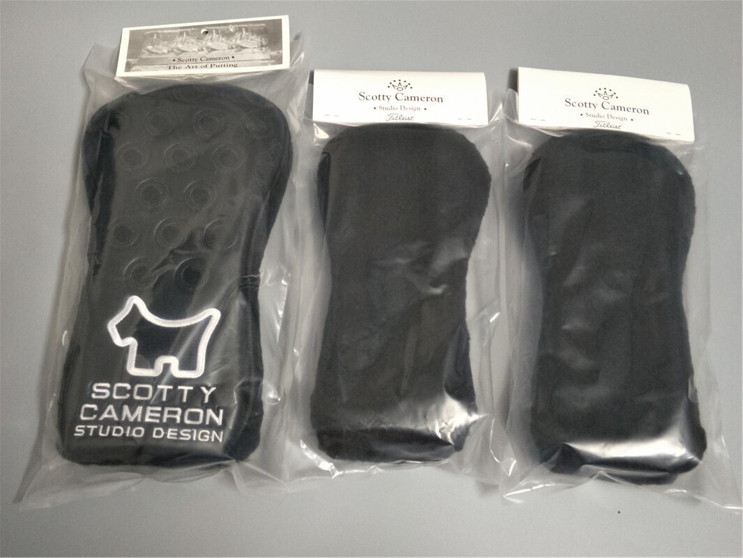 スコッティキャメロン★ウッド用カバー★1番・3番・5番 3点セット★黒×(白 DOG)