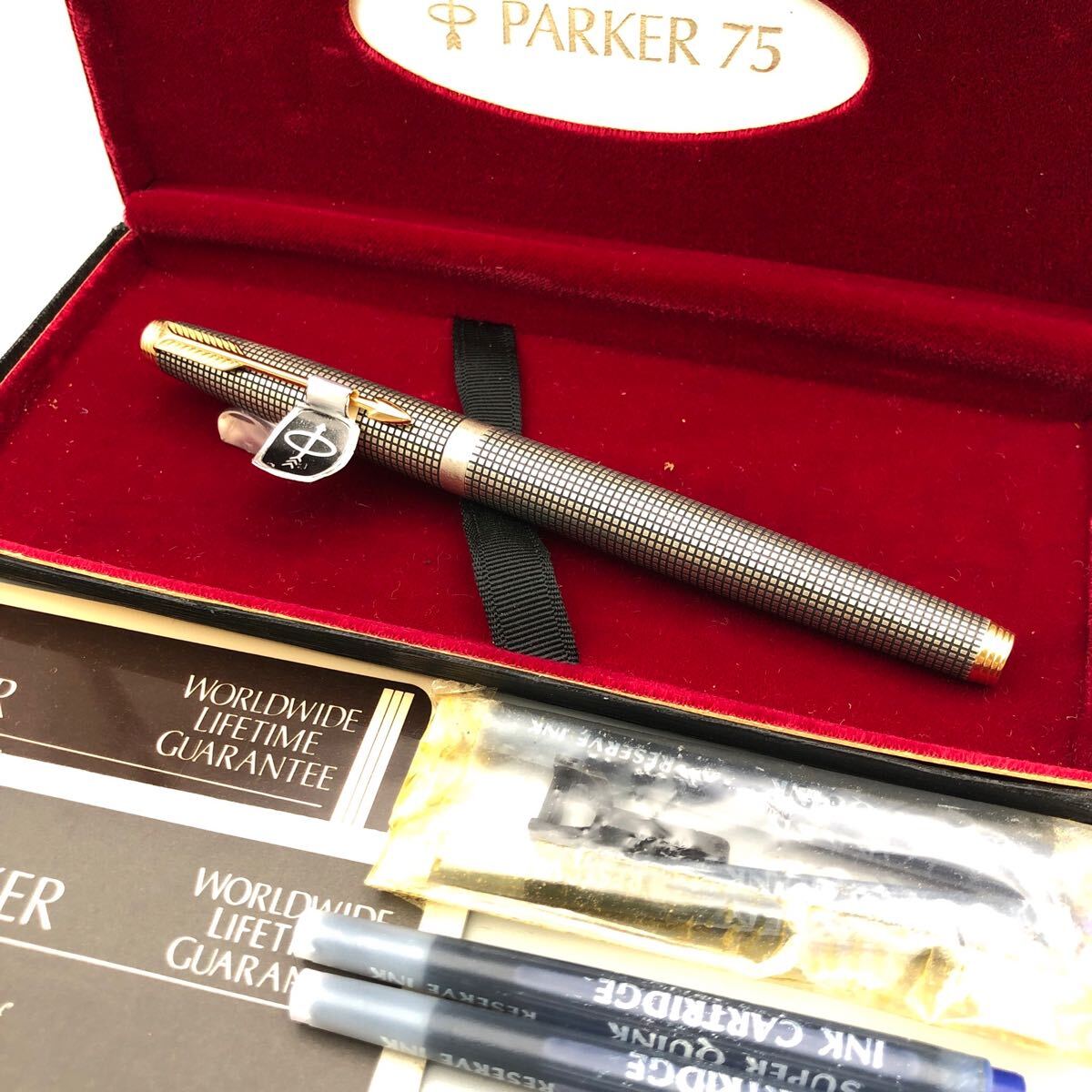 ★F09103/PARKER パーカー/万年筆/75/STERLING CAP&BARREL/ペン先 14K/格子柄/ケース付 | |