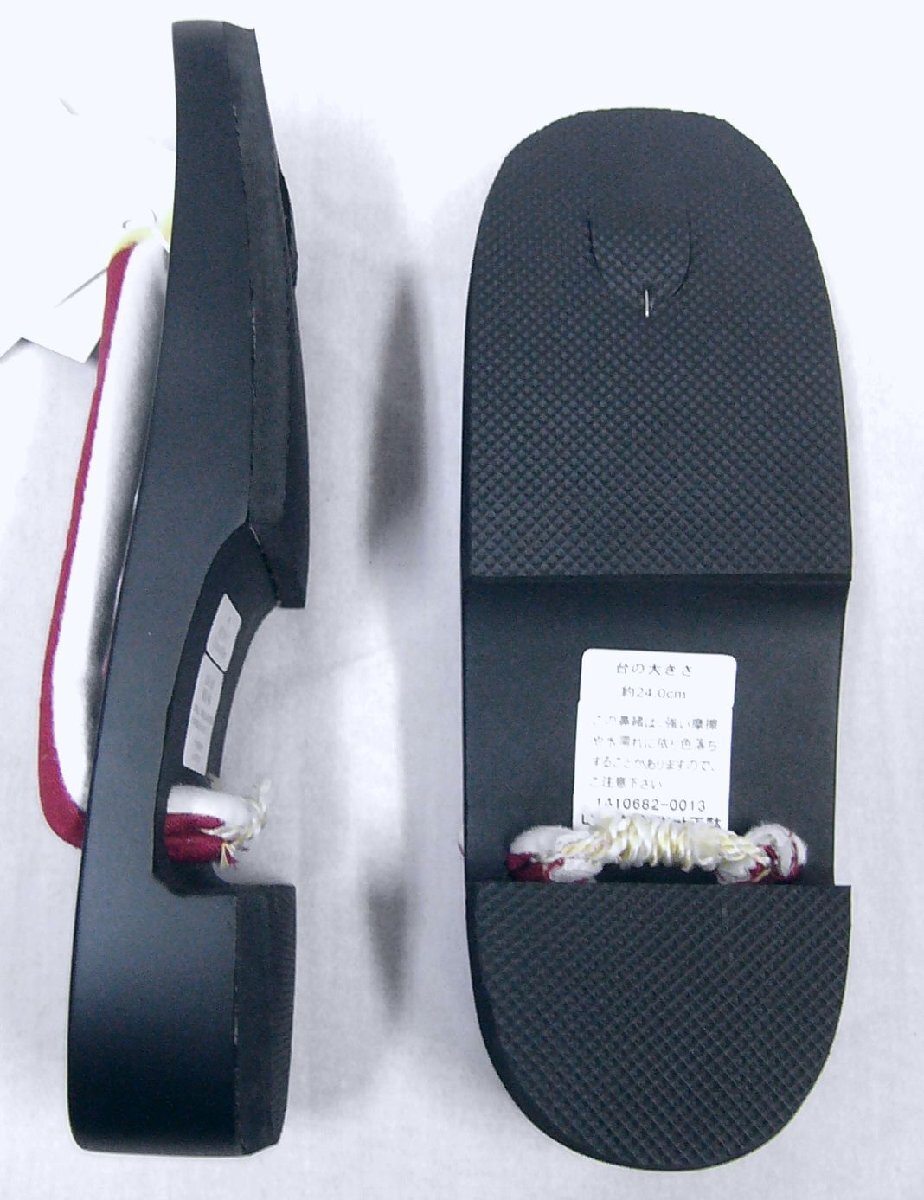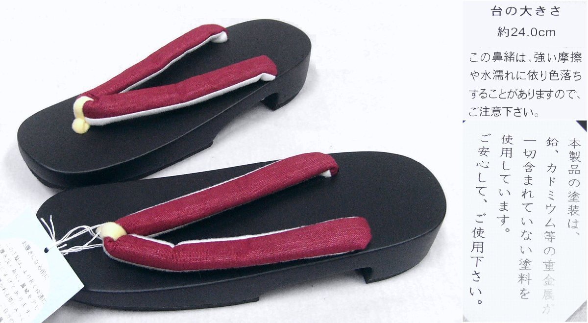 アウトレット 23㎝~24.5㎝の方に 黒色台の下駄 1006 葡萄色系の無地鼻緒 未使用・わけあり品