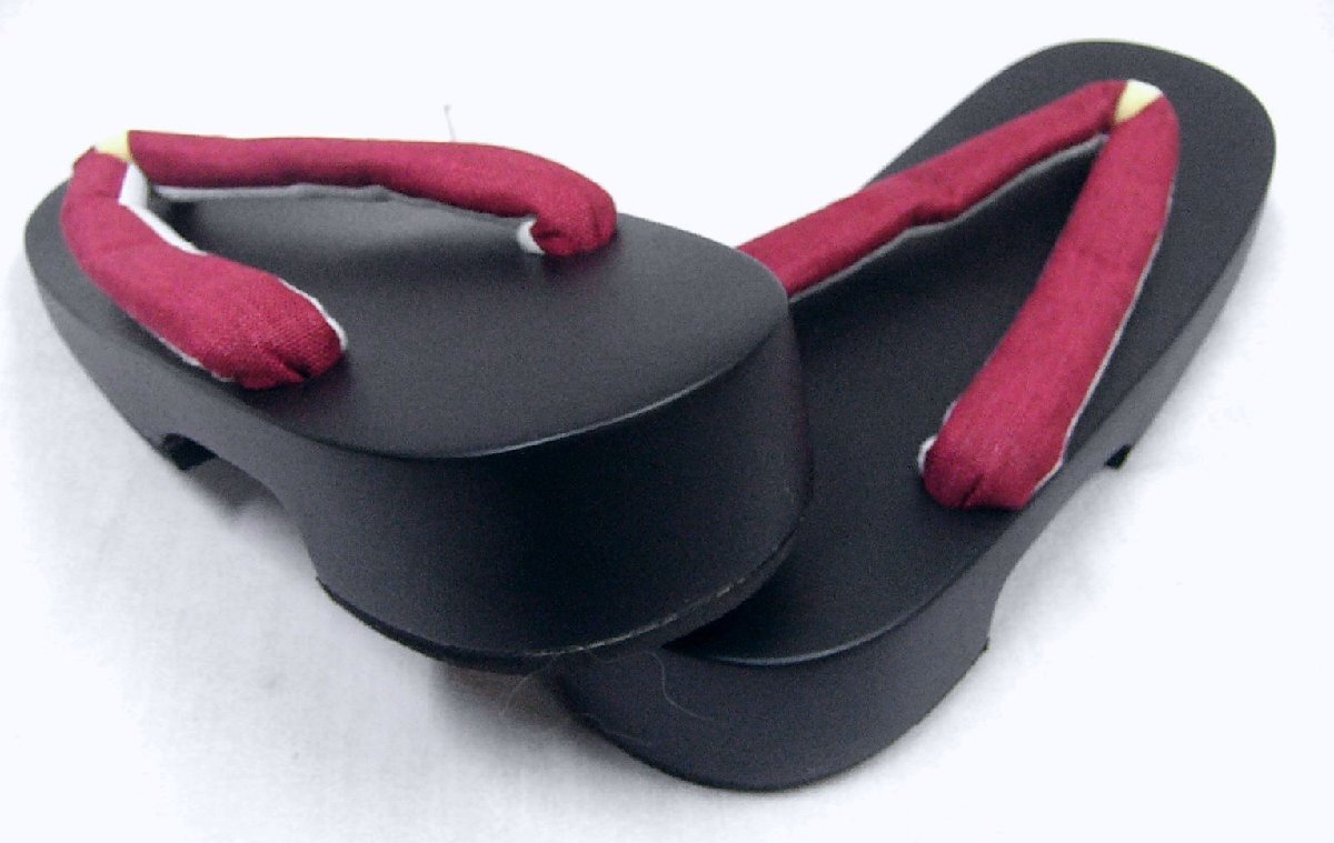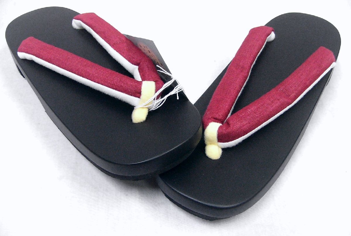 鼻緒はくすんだ赤色系の葡萄色系のような色合いの無地です。
