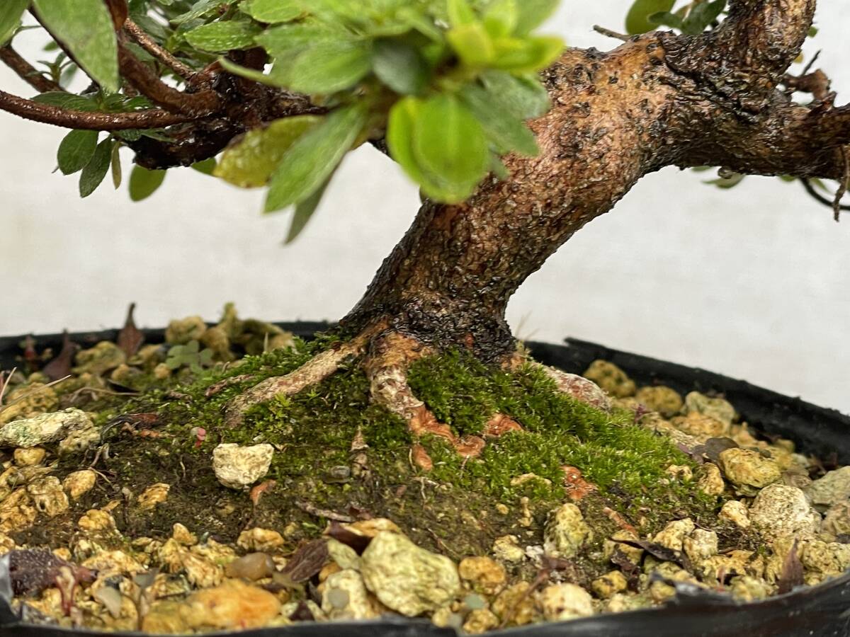 高さの抑えた程よい幹の模様で芯通し枝付きのバランス良くついて居ますのでお気に入りの鉢に植え替えして楽しんで下さい。