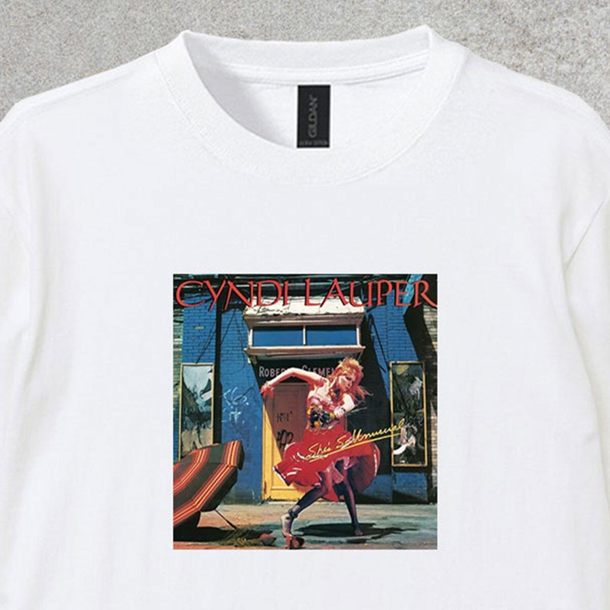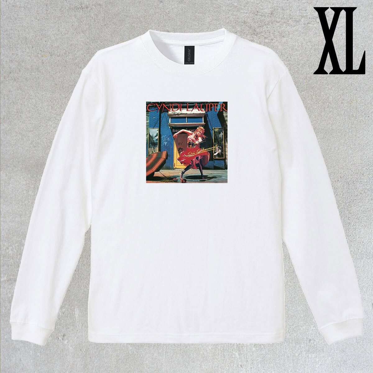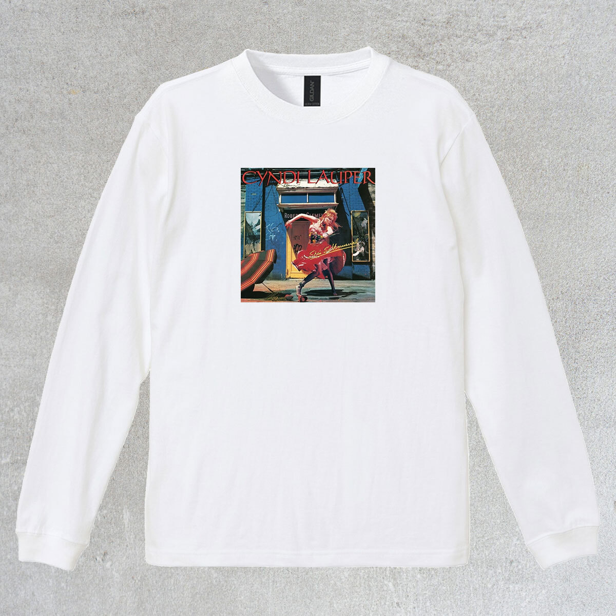 シンディローパー She's So Unusual 柄 フォトプリント リブ付き 長袖 Tシャツ ミュージック ロンT 6.0oz コットン100% ユニセックス XL