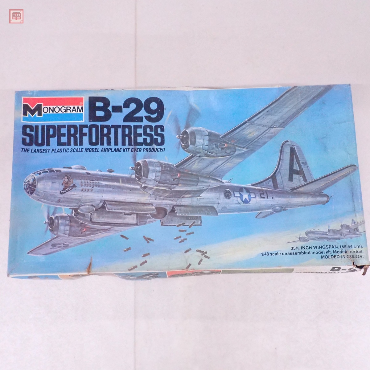 現状品 未組立 モノグラム 1/48 B-29 スーパーフォートレス ■こちらの商品は【現状品】として出品しております。 ■上記よりどの様な不具合が生じましても当店では交換・返金・返品等の対応はできません。 ■ご理解ご納得いただける方のみご入札をお願いいたします。 ■外箱にスレ、キズ、イタミ、凹み、テープやシールの跡、破れがあります。 ■内袋は開封されています。 ■説明書にイタミ、汚れがあります。 ■デカールに汚れがあります。 ■写真のものが全てです。付属物の有無や状態については写真からご判断ください。 ■付属物については細かいチェックはしておりませんので、万が一、欠品があったり余計な物が入っていたとしてもご了承ください。 ■商品到着後、当店の保証期間中は、商品及び箱や取説、付属品などを1つでも廃棄や破損をしないようにお願い致します。廃棄や破損をした場合、商品に問題があった場合でも対応や返金などの対処ができなくなります。 ■商品によりますが、発売されてから10年以上経過している中古品である事をご理解頂いた上でご入札をお願い致します。なお、新品や美品、また特記事項がある場合は別途明記します。 | |||