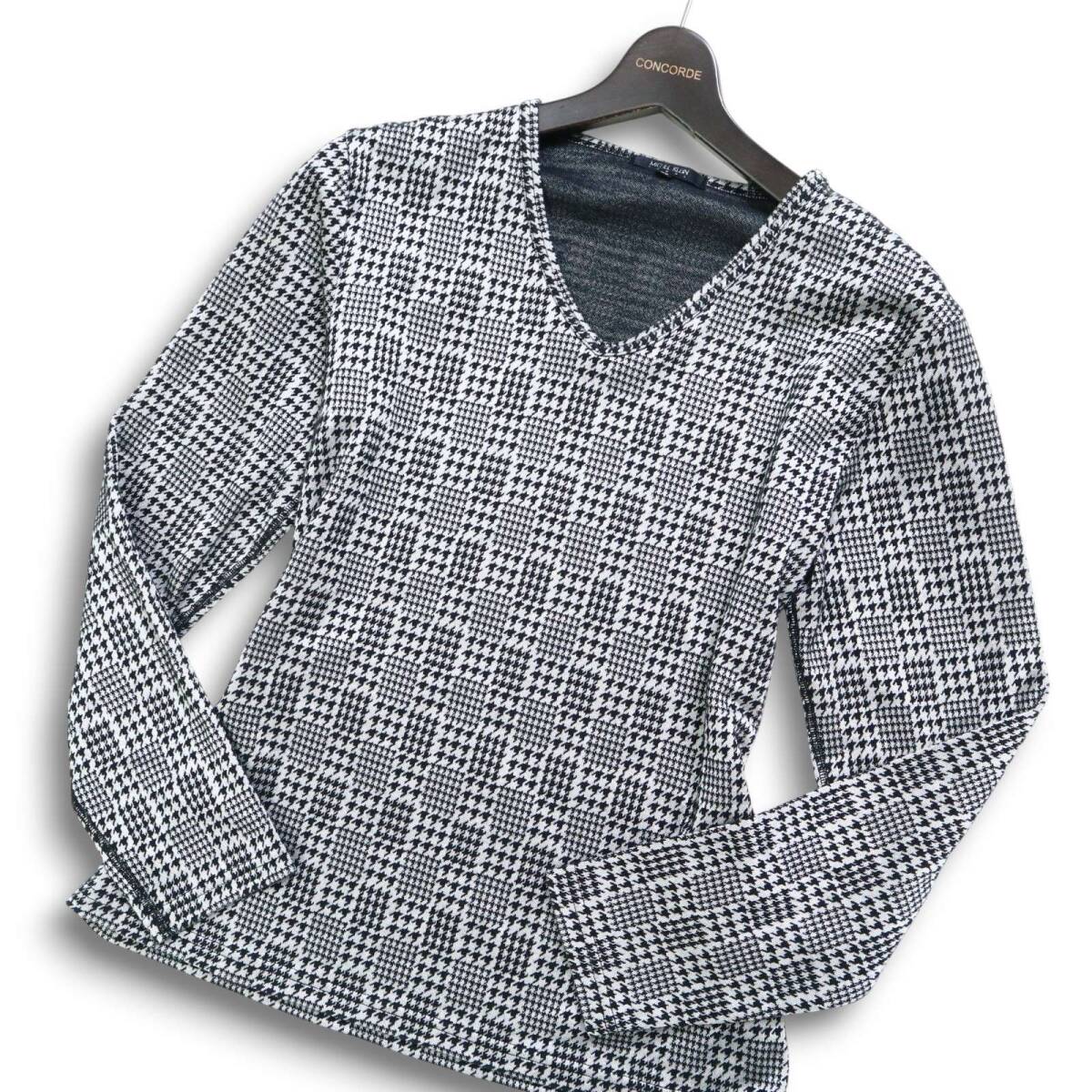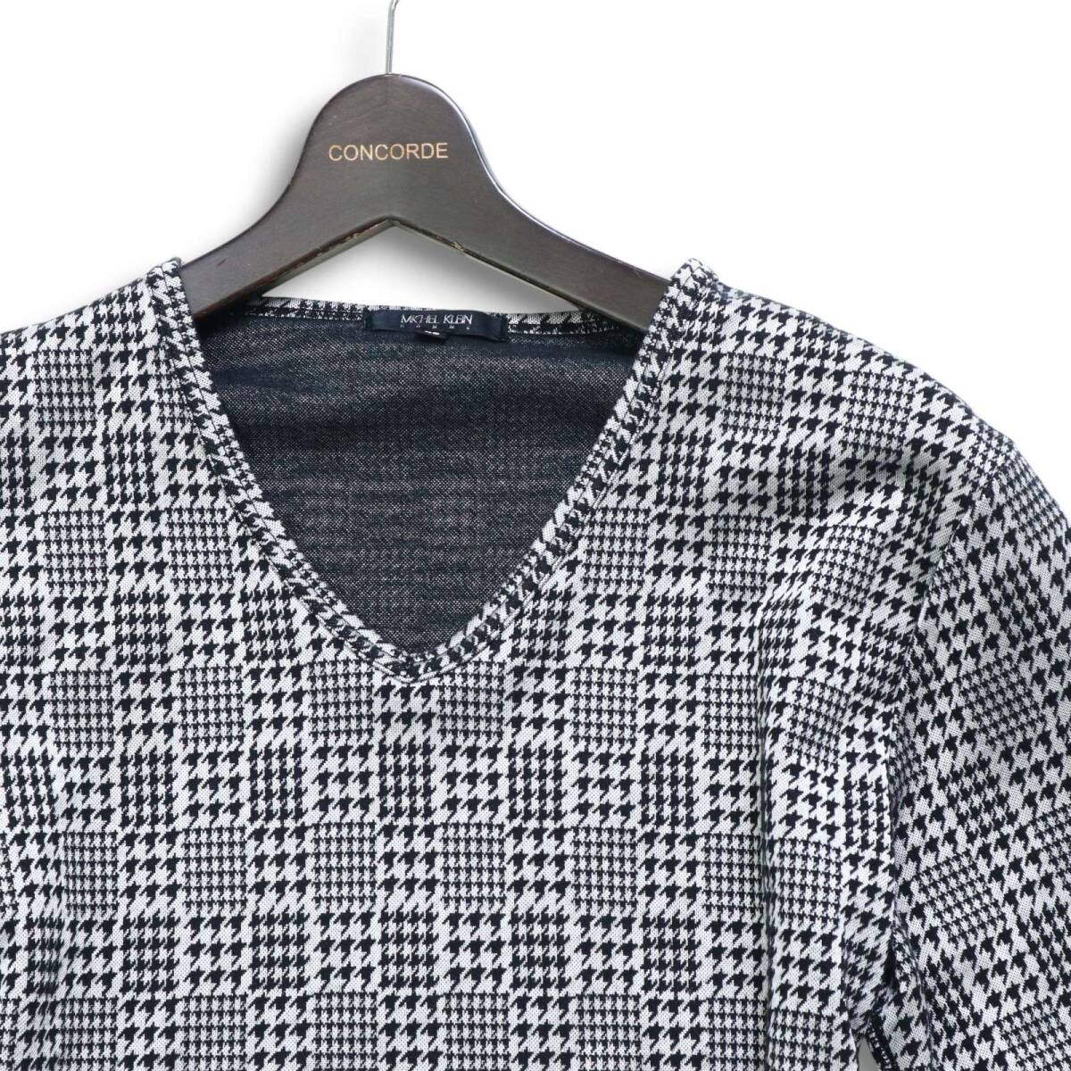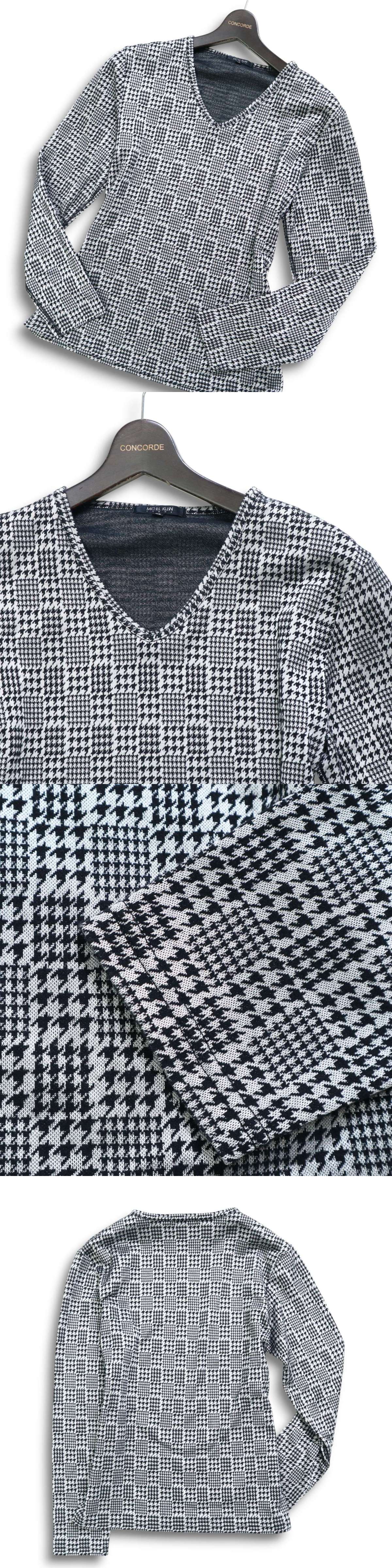 MICHEL KLEIN HOMME ミッシェルクラン オム 通年★ 千鳥柄 長袖 Vネック カットソー プルオーバー ロンTシャツ Sz.46 メンズ