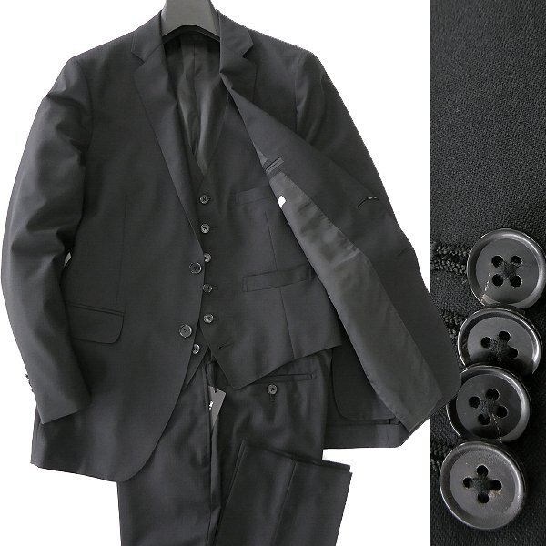 ※ハンガーは付属いたしません※ AB8サイズ(やや幅広体型の2XLサイズ相当) 胸囲102 胴囲92 身長185 ※写真は別サイズを使用している場合がございます※ ※商品に記載されたサイズ・寸法です※ 【ジャケット】 肩幅46cm 身幅56cm 袖丈65cm 着丈77cm 【ベスト】 身幅54.5cm 着丈56.5cm 【スラックス】 ウエスト95cm(内回り1周) 股上25cm 股下96cm 裾幅19.5cm 腿幅32.5cm(股下10cm部分) 【ジャケット】 表地:毛50% ポリエステル50% 裏地 胴裏:レーヨン53% ポリエステル47% 袖裏:キュプラ100% 【ベスト】 表地:毛50% ポリエステル50% 裏地:レーヨン53% ポリエステル47% 【スラックス】 表地:毛50% ポリエステル50% 裏地:ポリエステル100% ブラック |