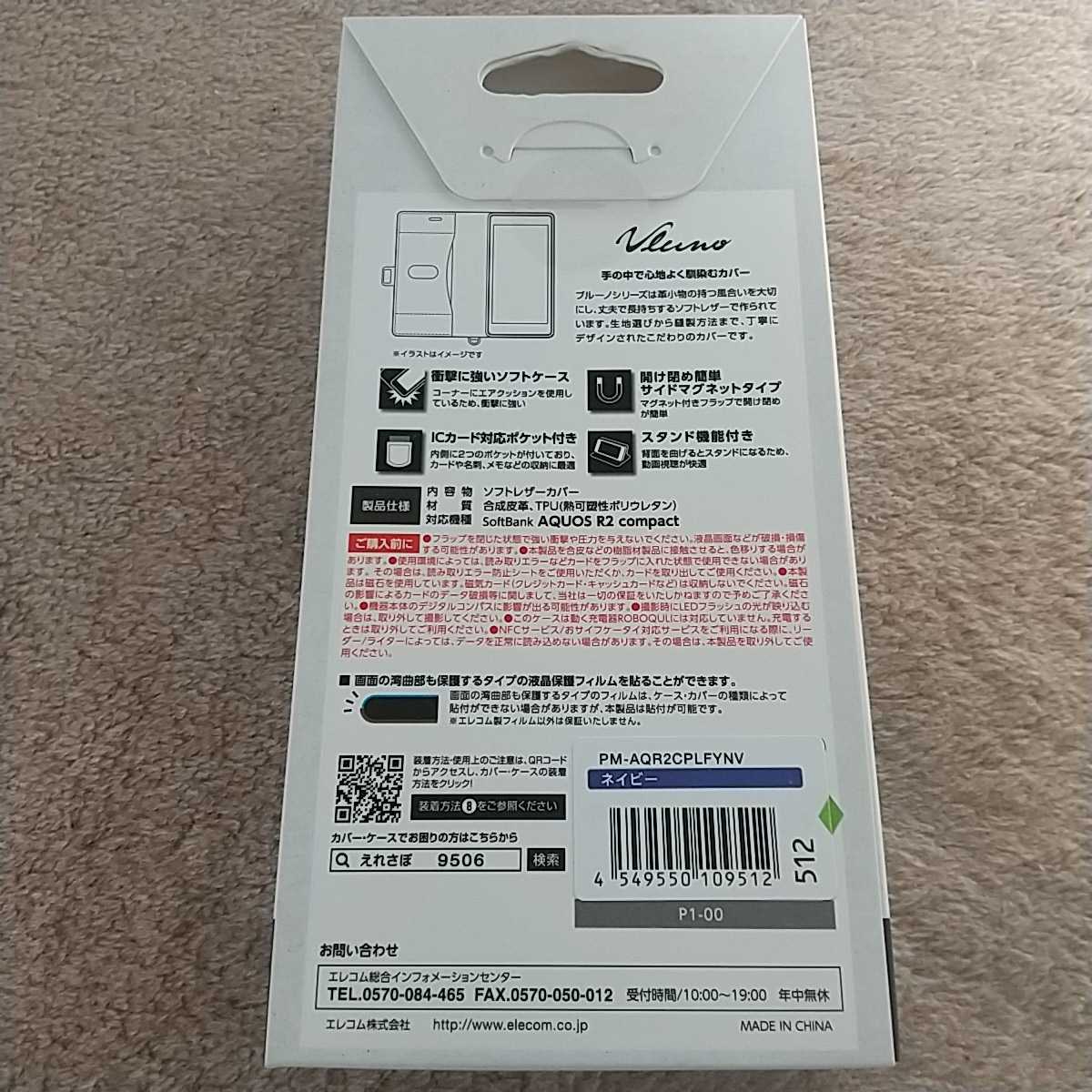 ◎ELECOM AQUOS R2 compact 用 ソフトレザーカバーケース ネイビー:PM-AQR2CPLFYNV