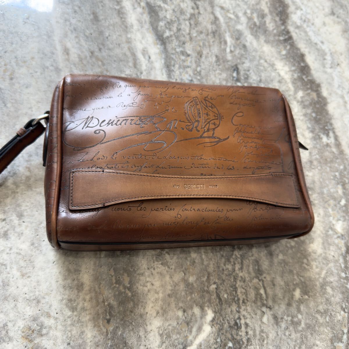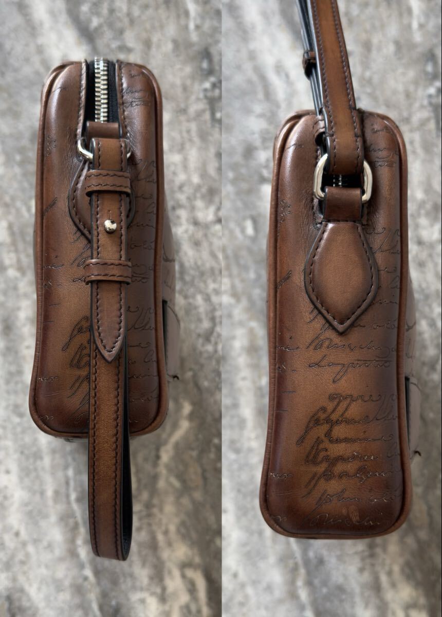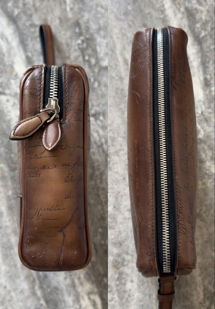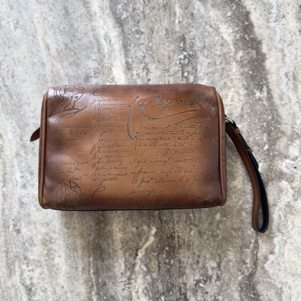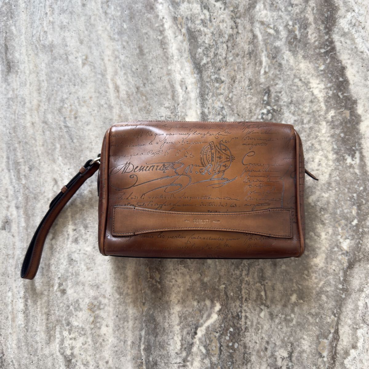 ベルルッティの2025年冬の最新モデル ローズウッド カリグラフィースクリット パティーヌレザークラッチバッグ セカンドバッグになります。