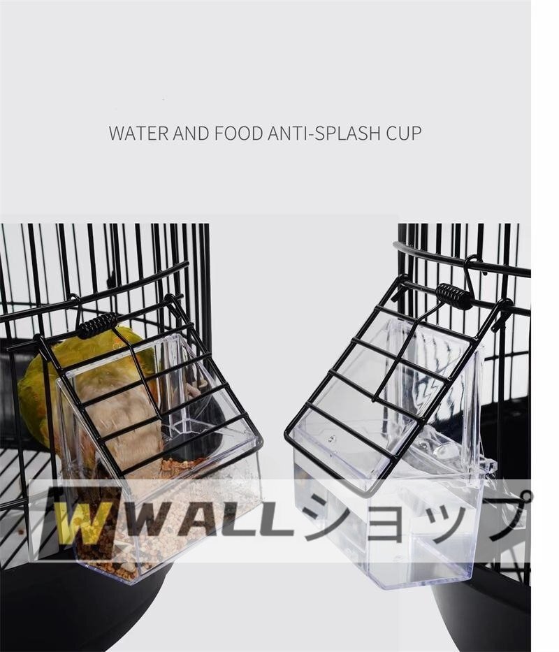 2.【セット内容と数量】ケージx1/スタンドx1/金属ブランコx1/止まり木x1/跳ね防止透明カップx2/金属底網x1/引き出しトレイx2/スプリングカップドアx2/玄関x1/繁殖扉x1/シャーシ固定バックルx3/鳥巣x1/フックx1/バンドx5