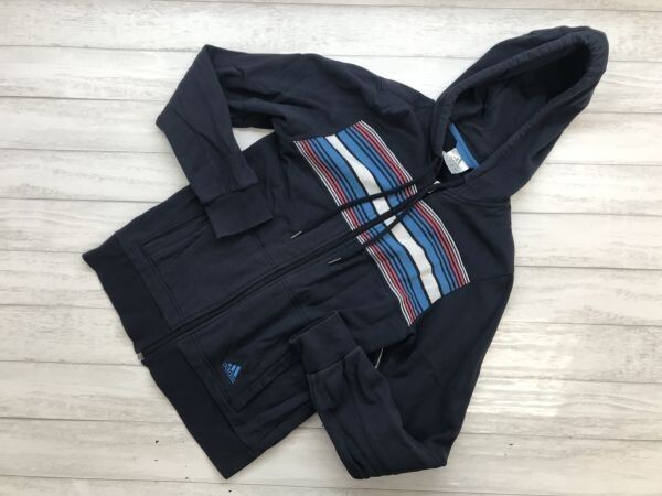 アディダス adidas スポーツ ストリート トレーニング 古着 パネルボーダー ジップアップ スウェット パーカー レディース 綿100% S です。