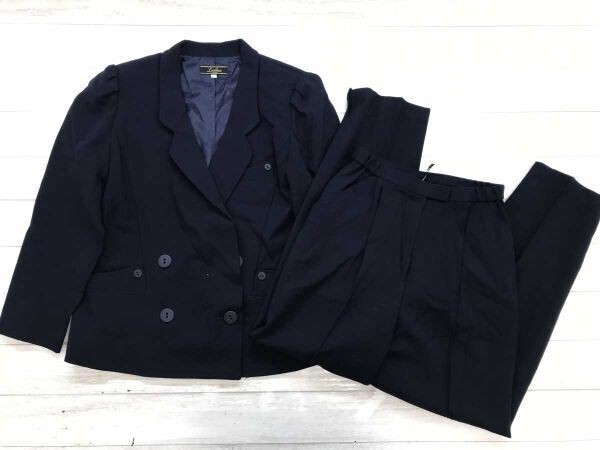 Leilian レリアン レトロ バブリー イタリアン モード 古着 ダブルスーツ パンツ 上下 セットアップ レディース ウール100% 9号 紺 です。