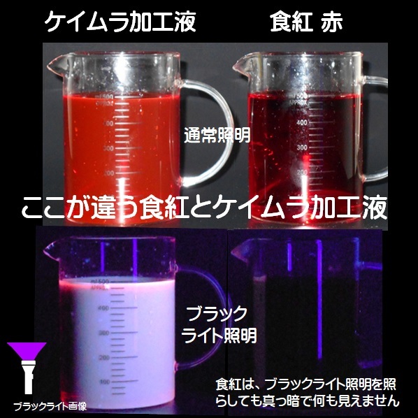※注 食紅とは全く違います。食紅は紫外線に発光しません。