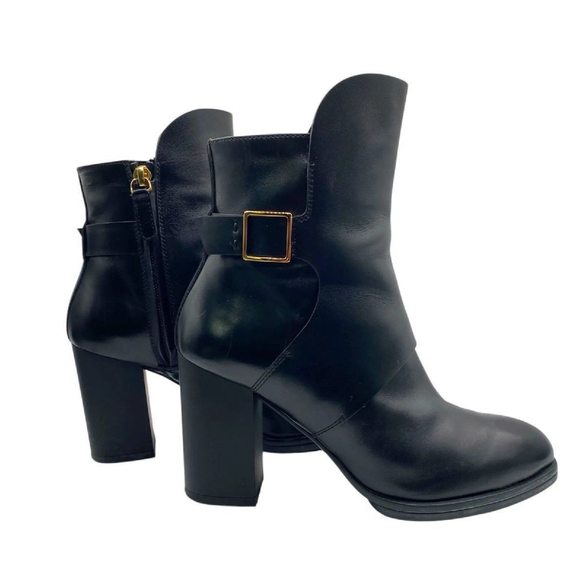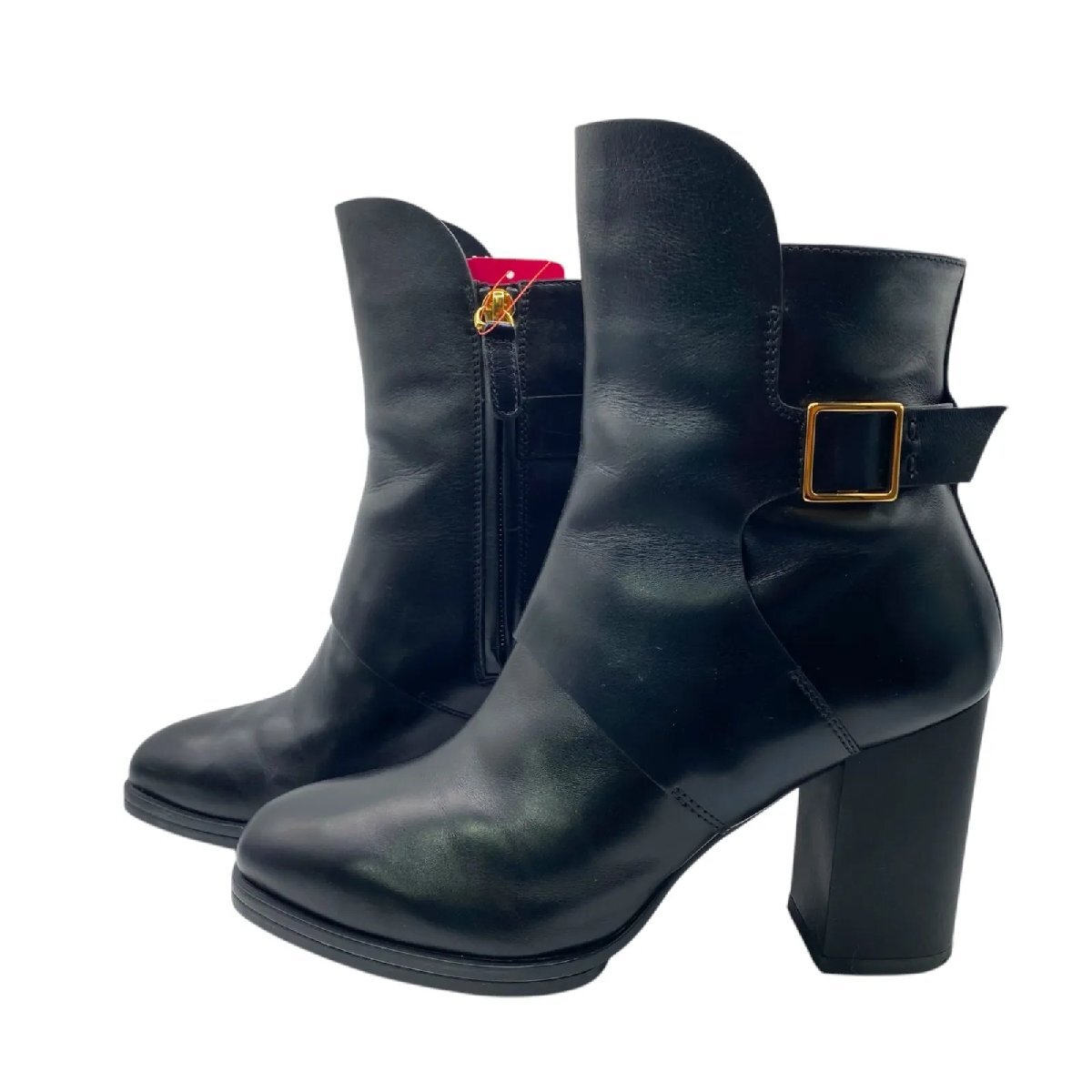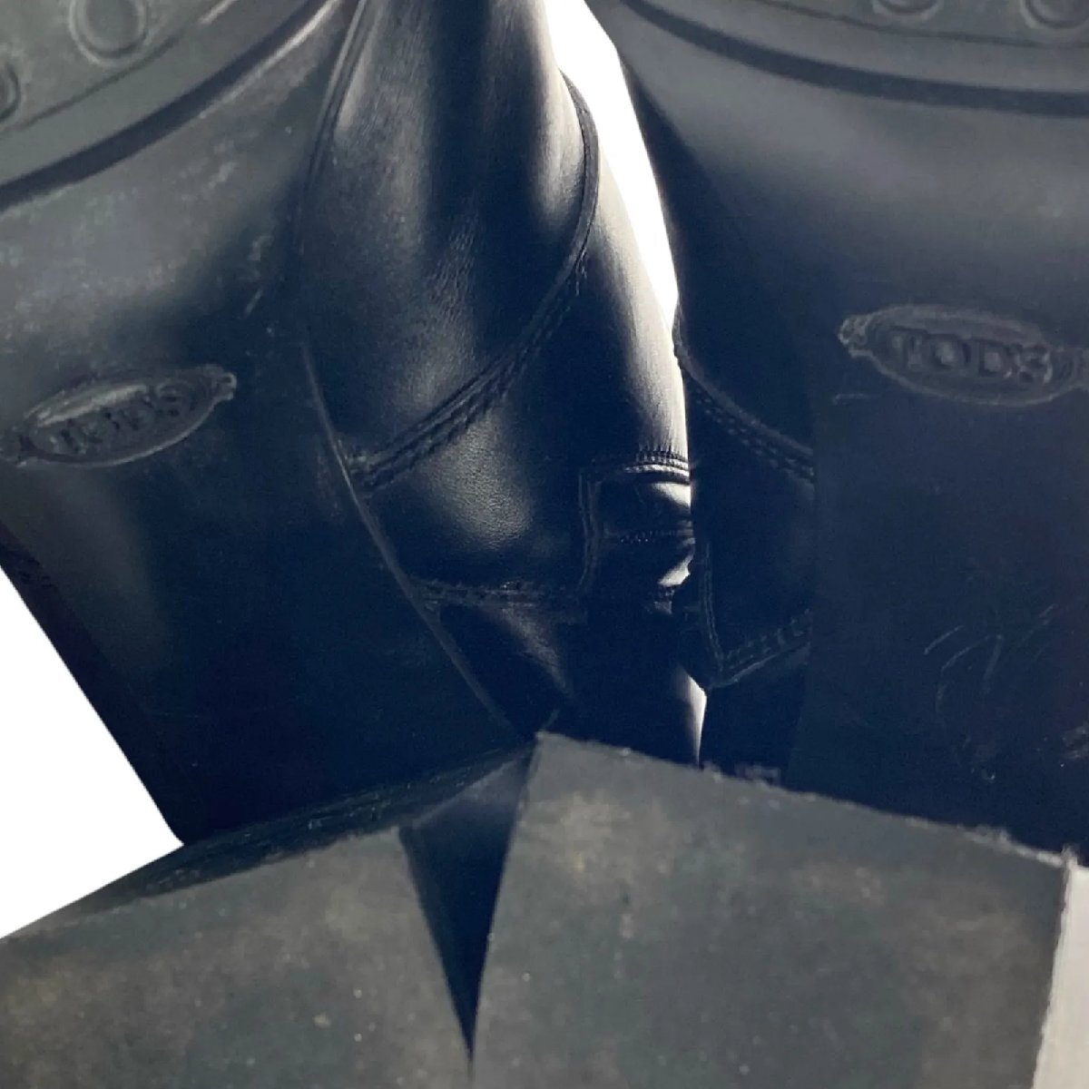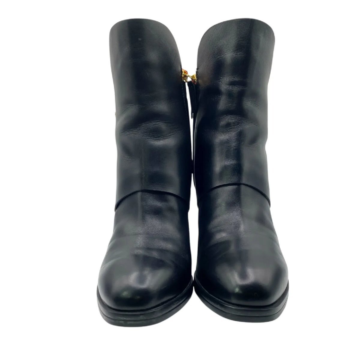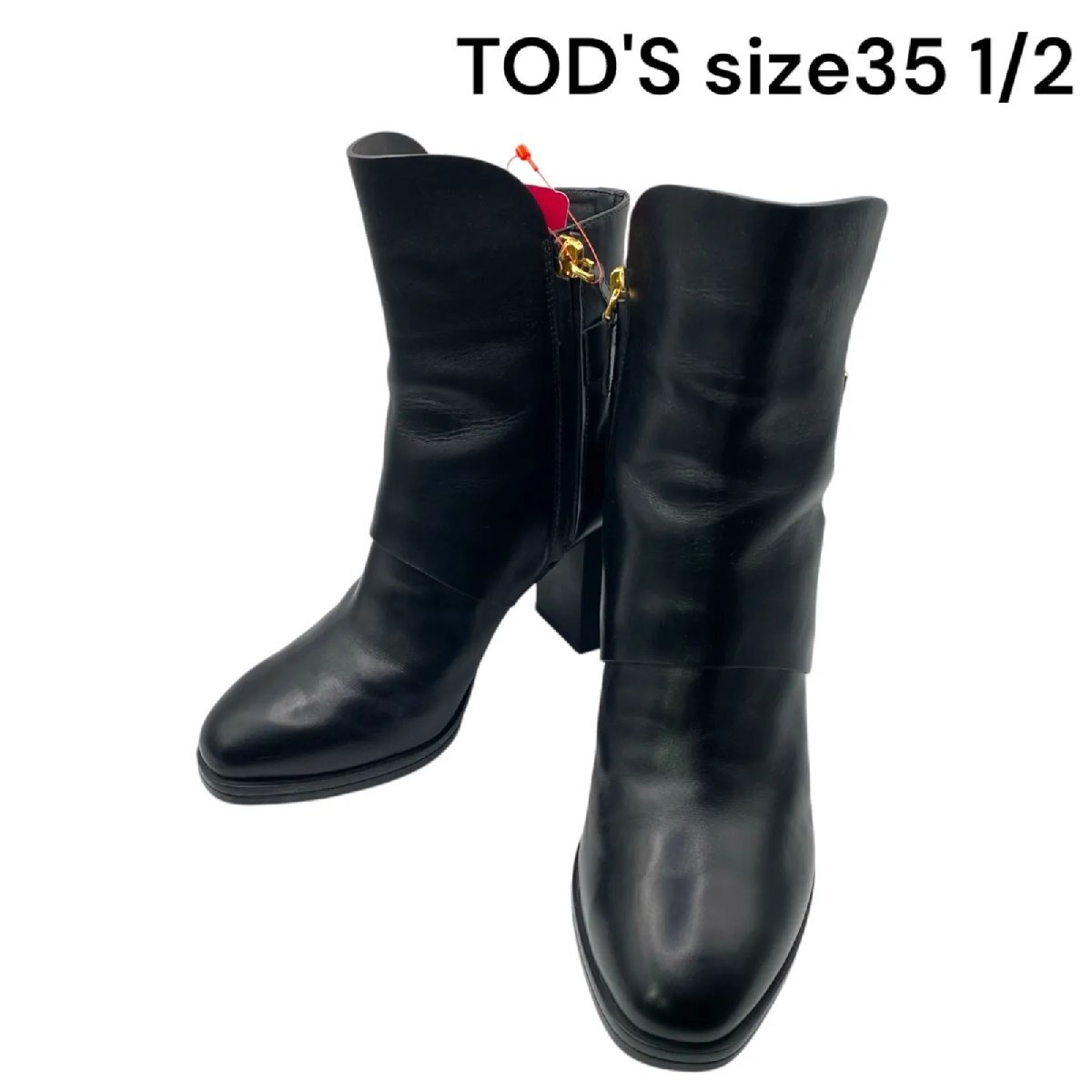 美品 トッズ TOD'S 35ハーフ、22.5cm ショートブーツ ブーツ ヒール レザー 本革 黒 レディース S5O388