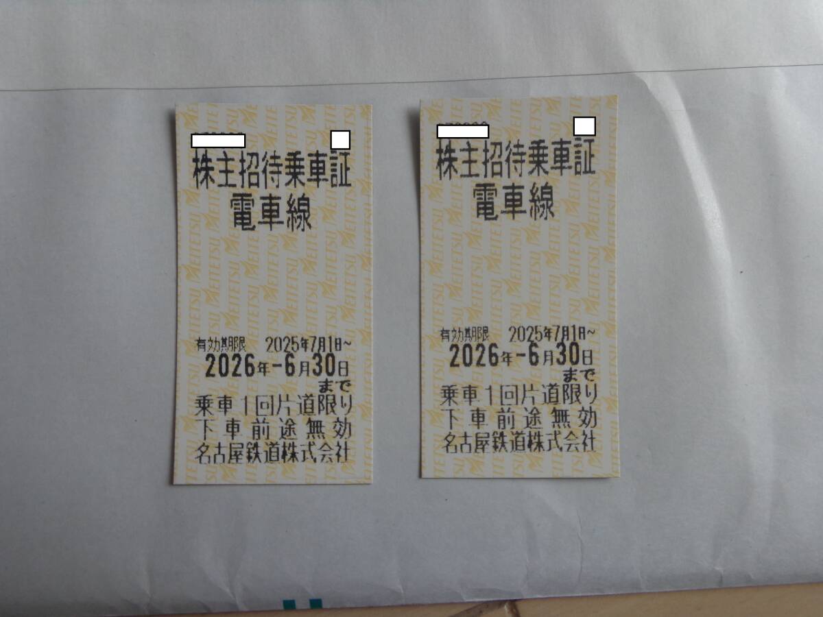 名鉄 ○株主優待券 2枚○ 2026年6月30日まで 株主招待乗車証 電車線 名古屋鉄道 電車線片道乗車証 MEITETSU