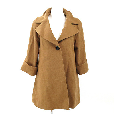 フェミニンなAラインシルエットがとっても可愛い♪ タックで仕立てた大ぶりなデザイン衿が目を惹きますね☆ ベーシックカラーですのでお洋服を選びません! おしゃれなコートはコーデの主役になってくれますよ。 袖口に毛玉がみられるなど若干の着用感が残っております。 着丈約82cm 裄丈約65cm バスト約92cm 【サイズ】:(M) 【素 材】:(ポリエステル 55% 毛 45%(裏地 ポリエステル 100%)) 【 色 】:(茶) 【程 度】:(AB) 8252-20140210-015 499 001 | ||||