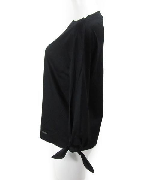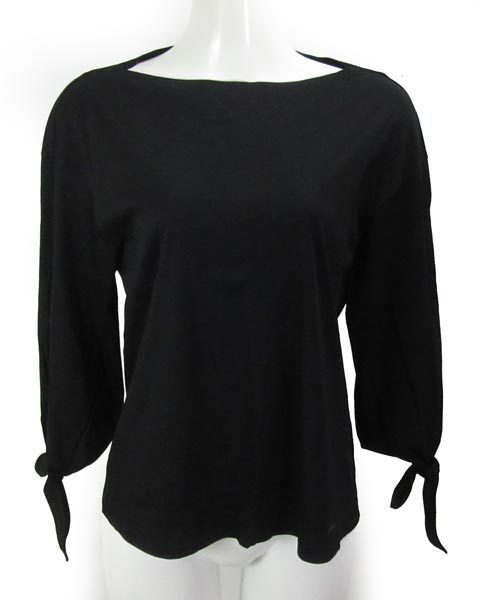 | シンプルなデザインのフェミンなカットソー。お袖口は結んで頂くデザイン。カジュアル綺麗、カジュアルフェミニンスタイルにオススメのアイテムです。左裾にロゴプレートがついていてます。 |