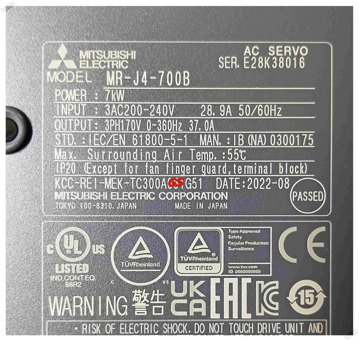 産業用サーボアンプ MR-J4-700B 7kW 6PH+1PH AC200V- 240V 50/60Hz 未使用