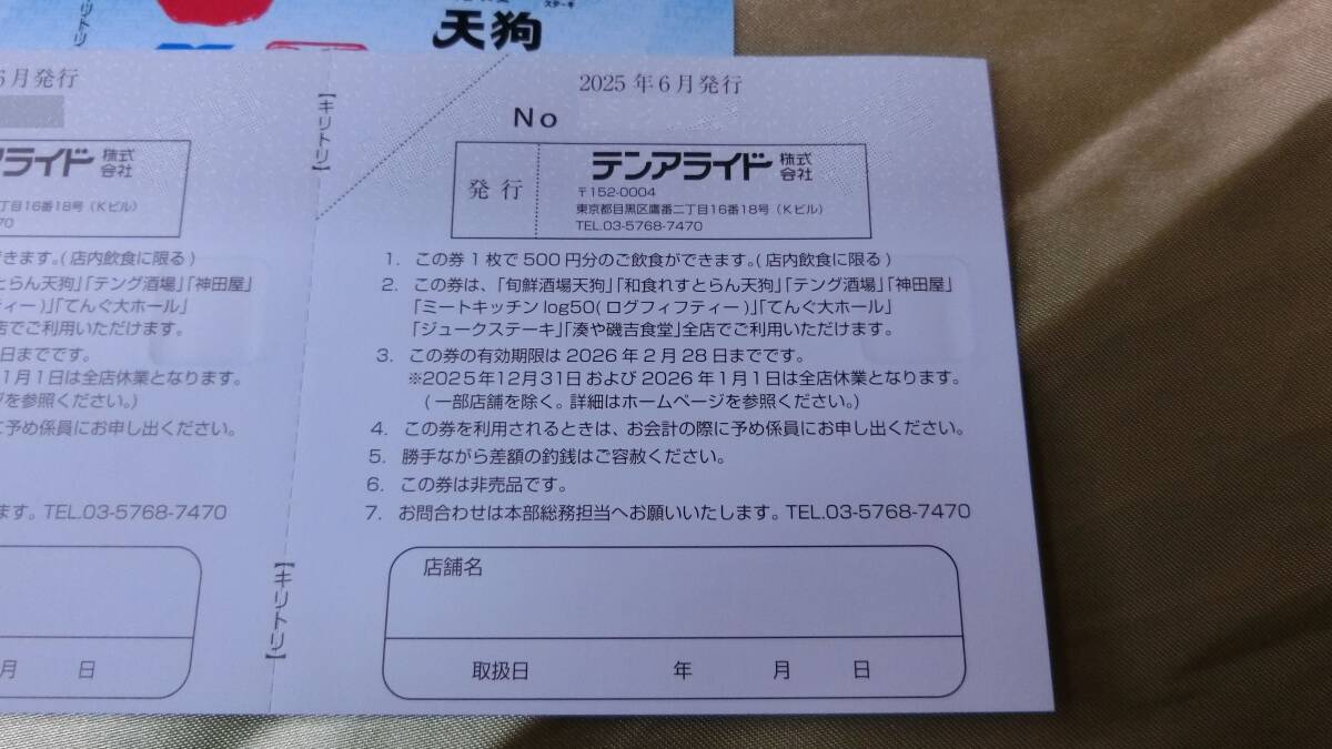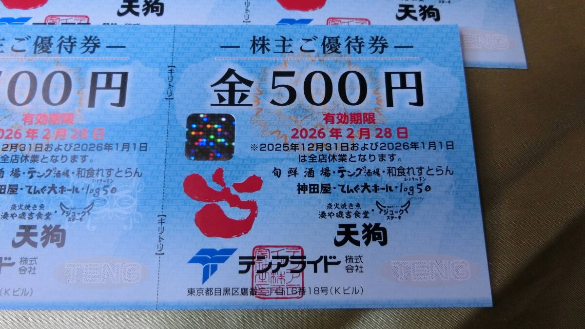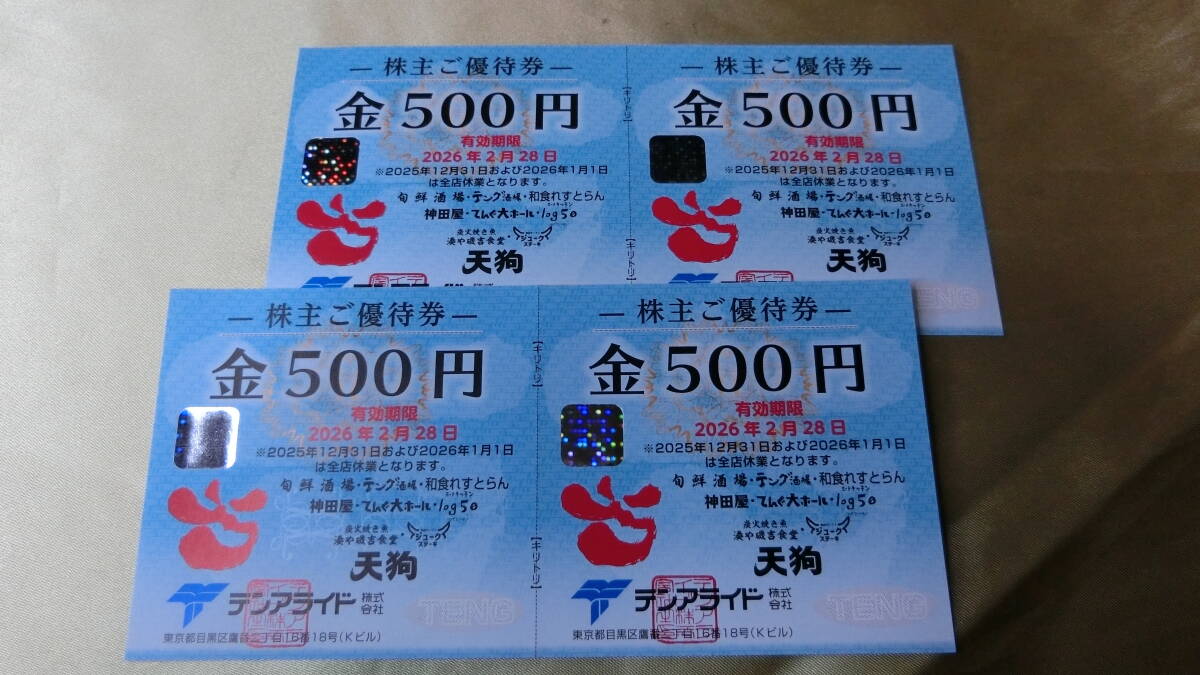 ■株主優待 テンアライド 2000円分(500円券*4枚)★天狗■★送料85円~♪