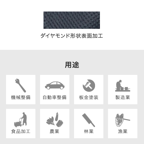 用途:機械整備、自動車整備、板金塗装、製造業、食品加工、農業、林業、漁業