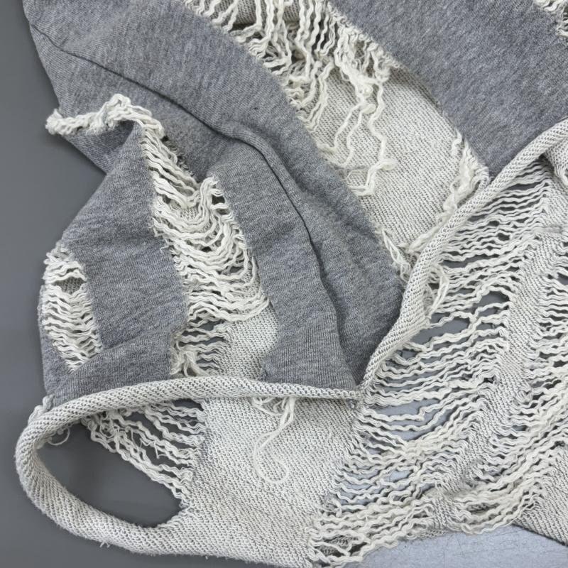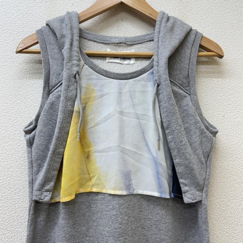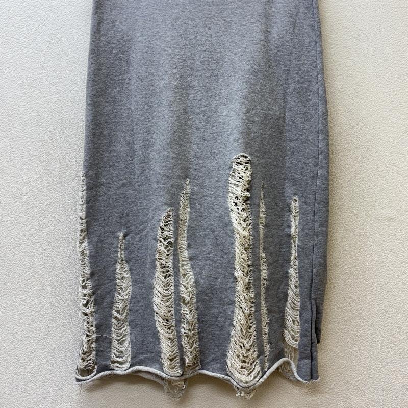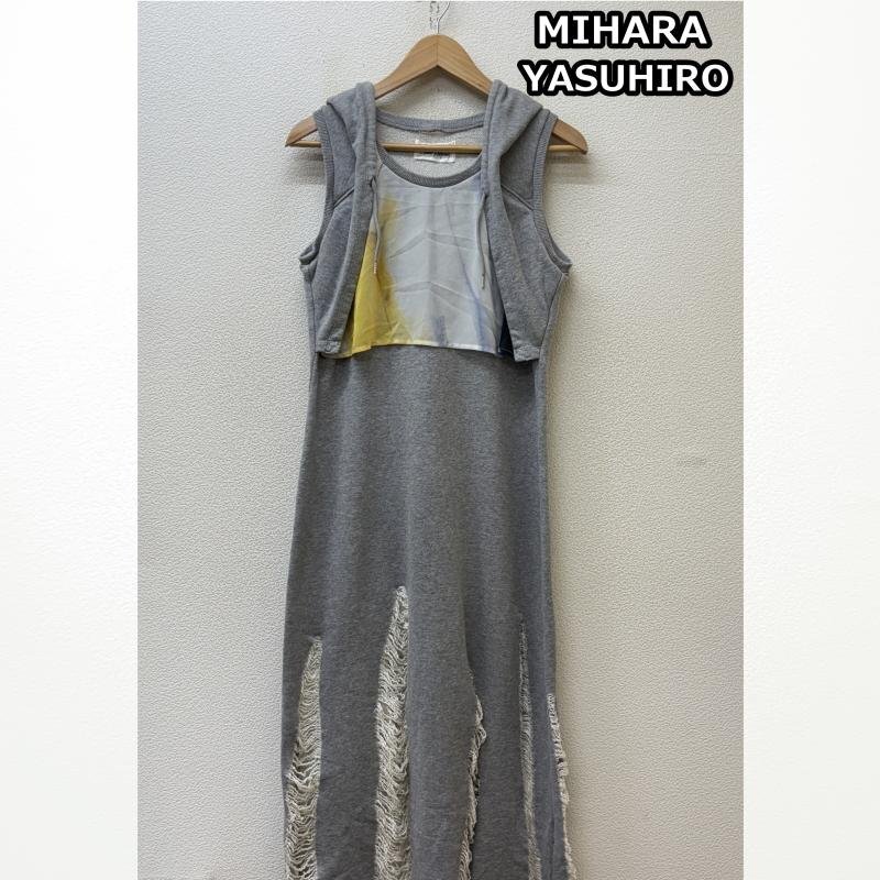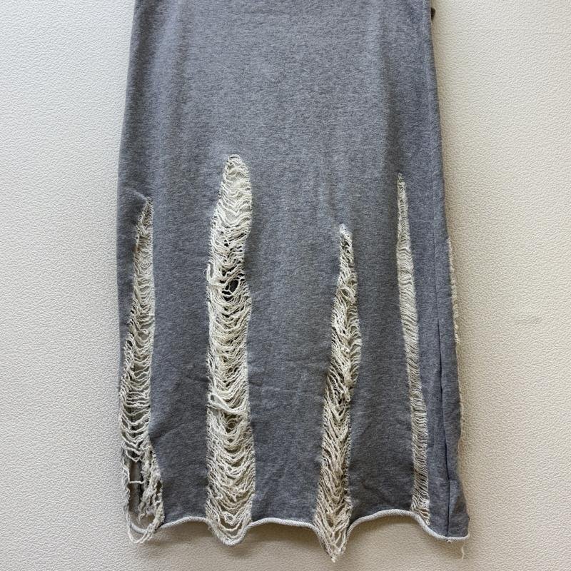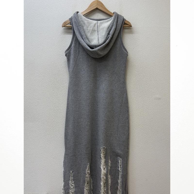 ミハラヤスヒロ BEHE RIDGEWAY ダメージ加工 スウェット生地 フード ノースリーブ ロング ワンピース 灰色 グレー 36