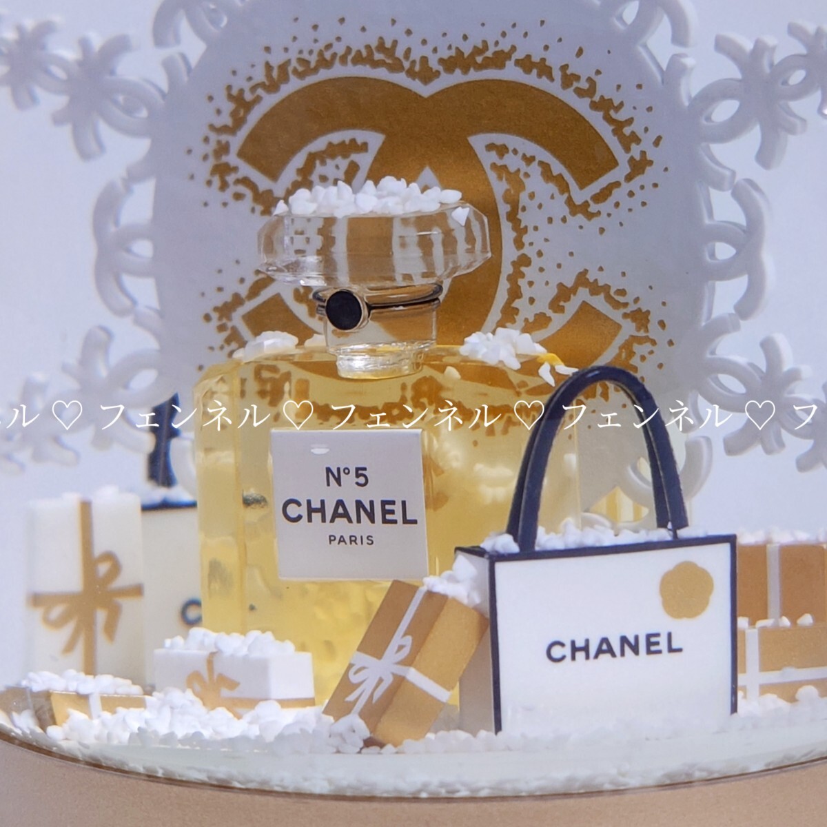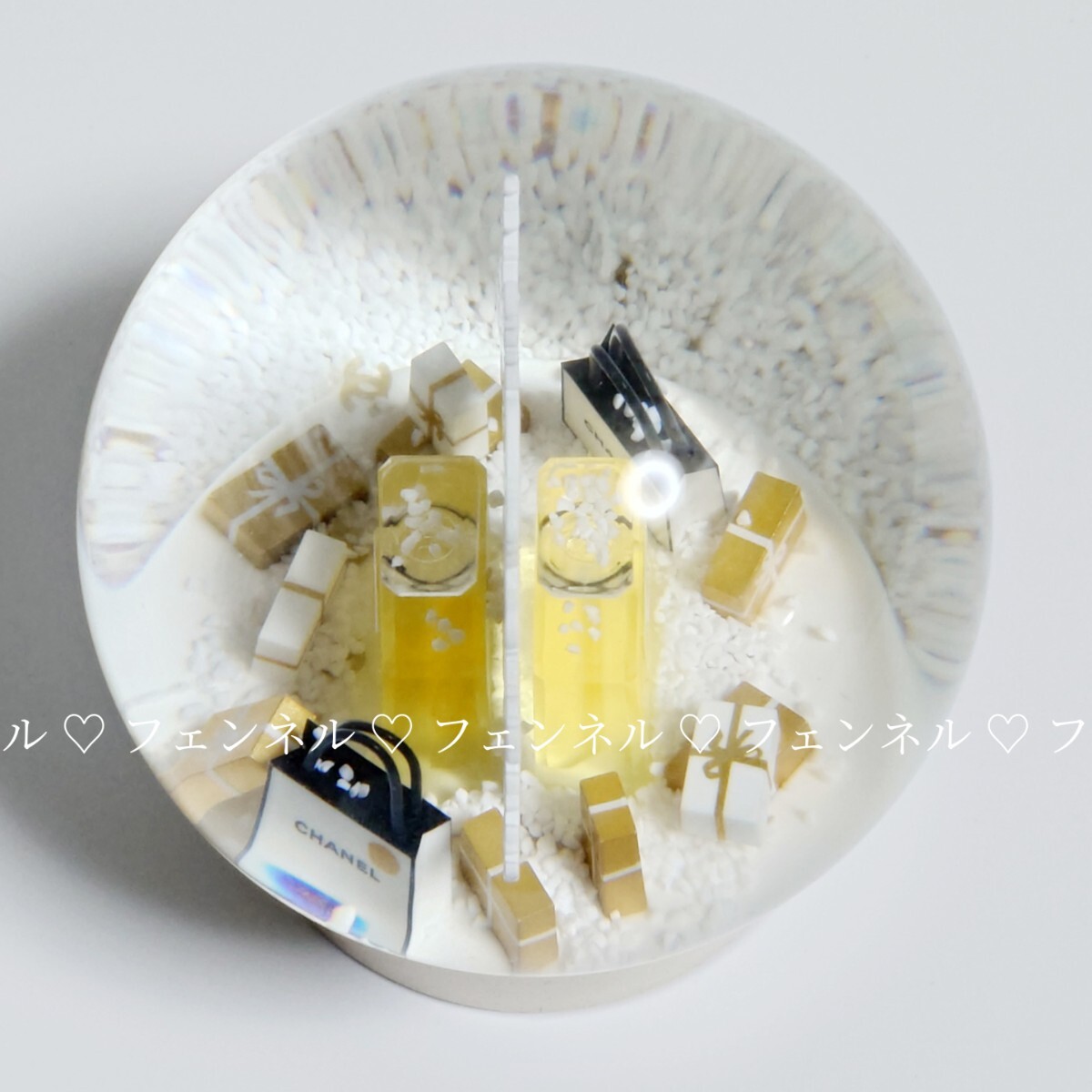2024年のノエル限定スノードームです。フレグランスNo.5を中央に配置した豪華なデザインとなっています。前後でデザインはほぼ同じです。ずっしり重く、重厚感がありますので高級感もあります。ホリデーシーズンのインテリアに、大切な方へのギフトに、ご活用ください