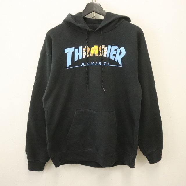 商品名 W838 2000年代製 THRASHER スラッシャー スウェットパーカー■00s 表記Sサイズ ブラック フーディー スケーター 古着 アメカジ ストリート