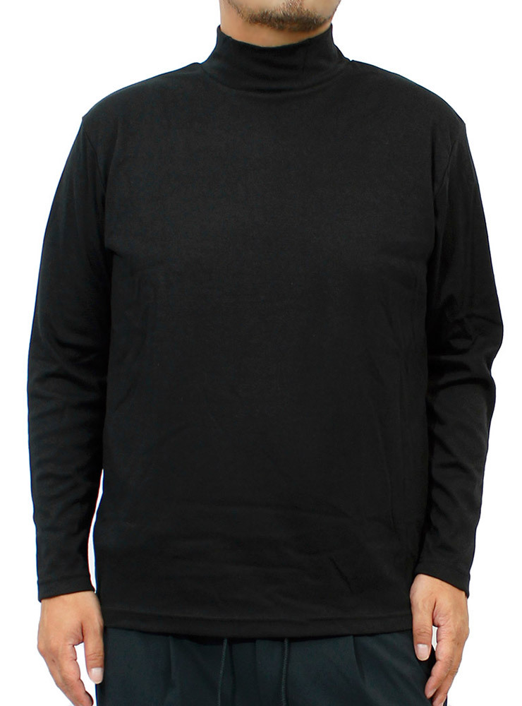 商品名 | 【新品】 5L ブラック 長袖Tシャツ メンズ 大きいサイズ 無地 ボーダー フライス ハイネック カットソー |