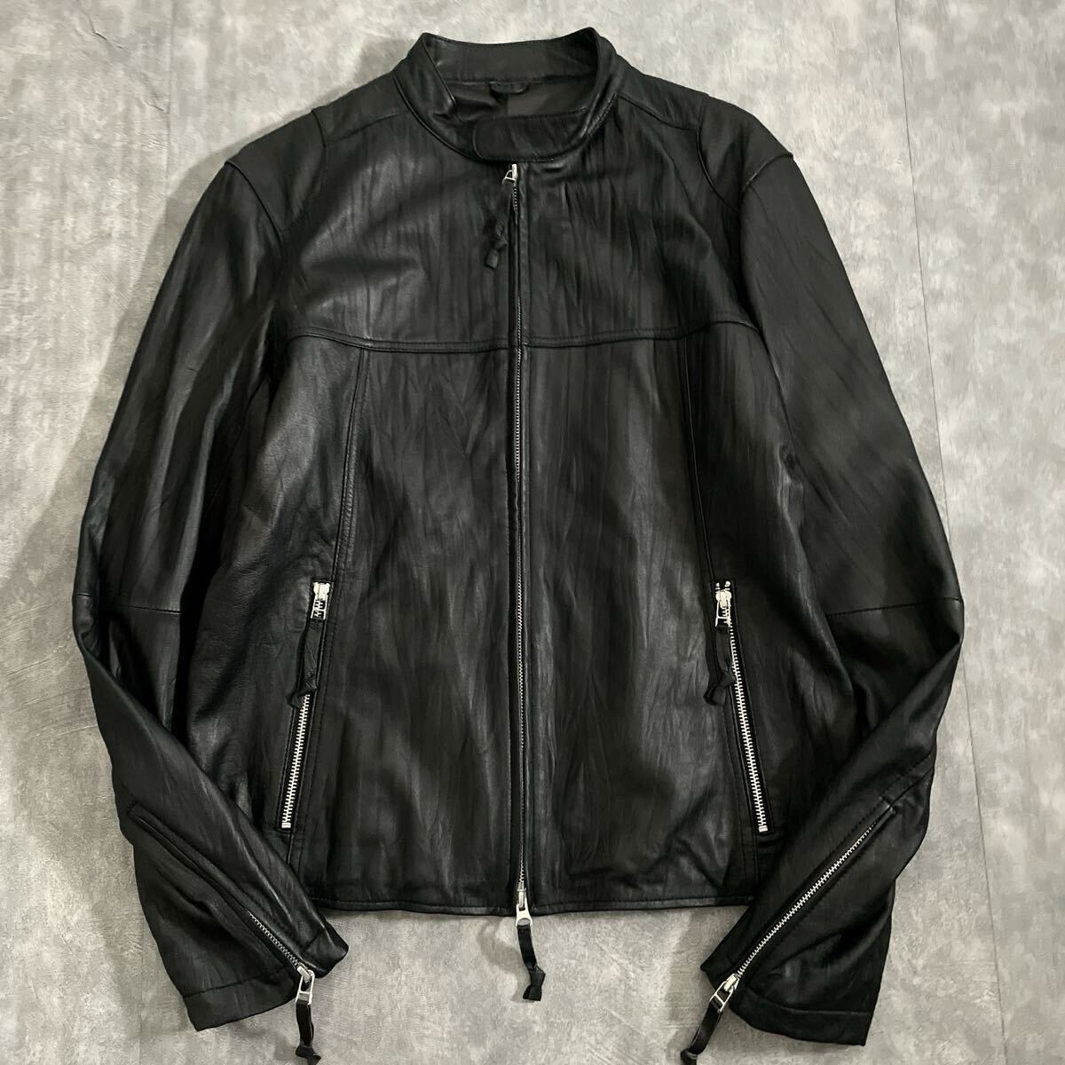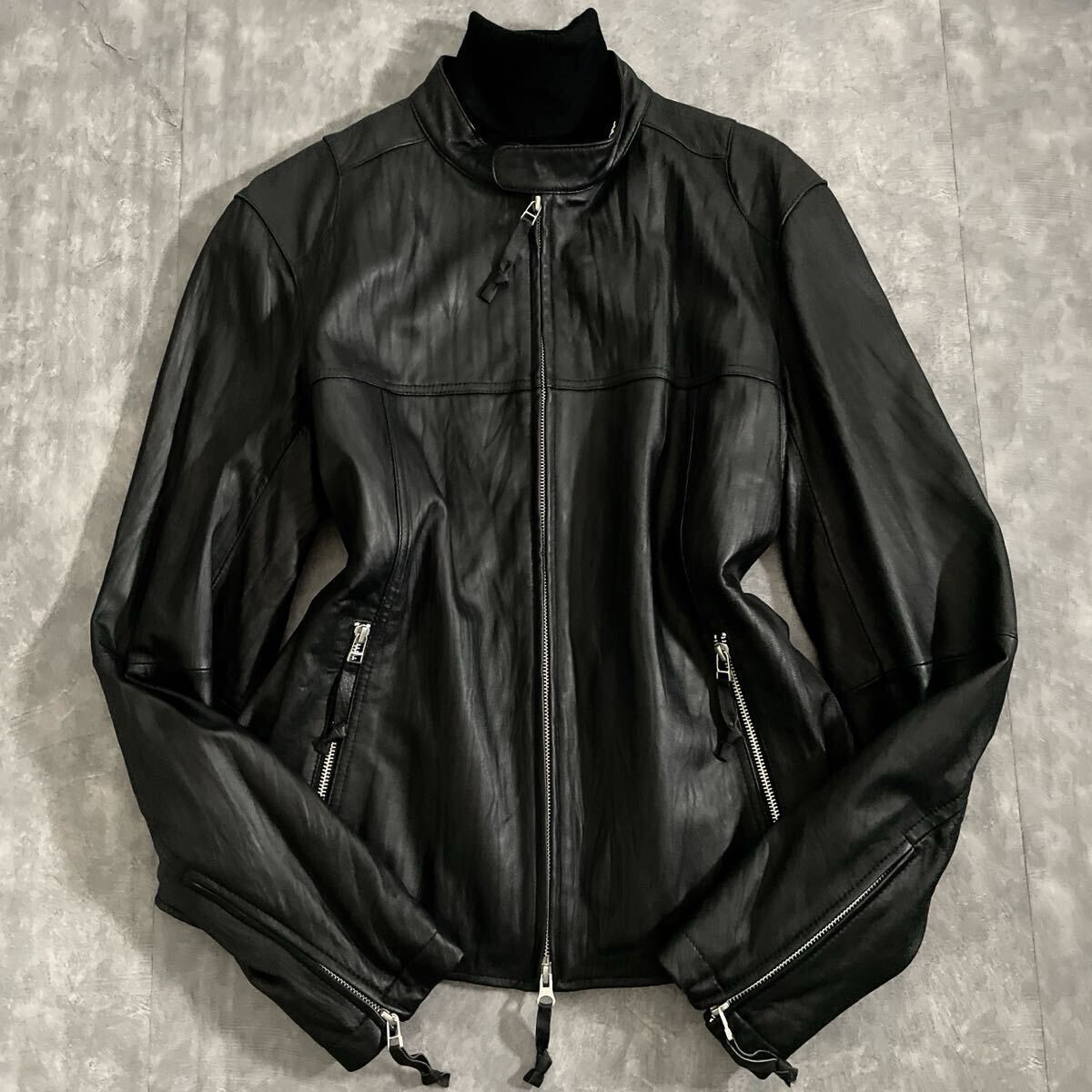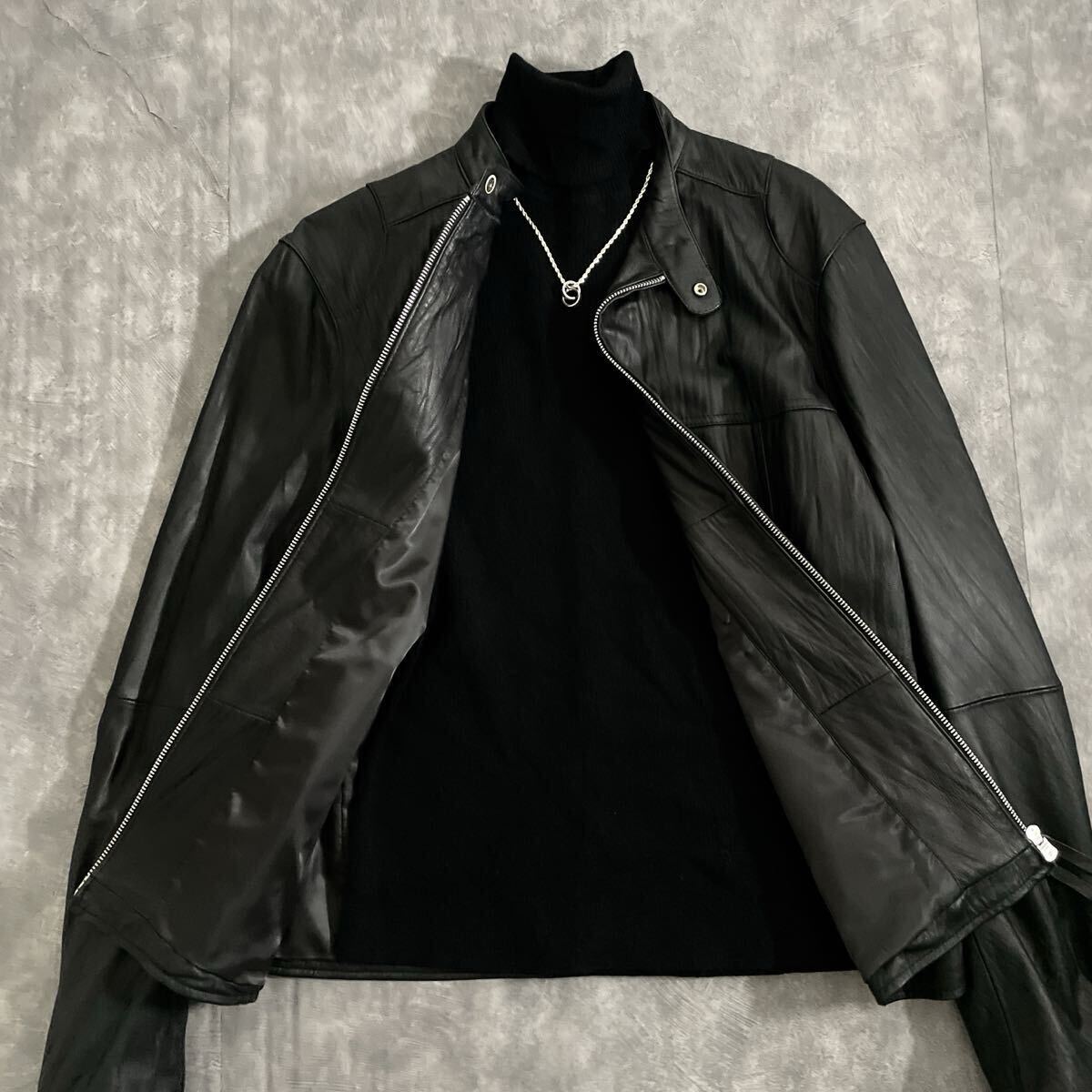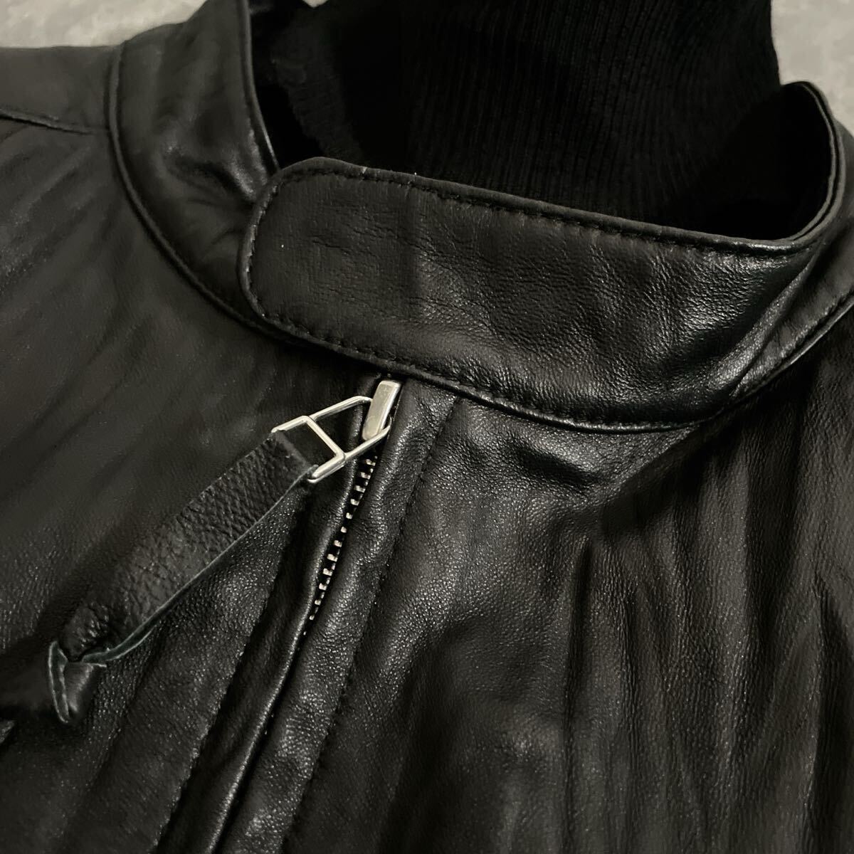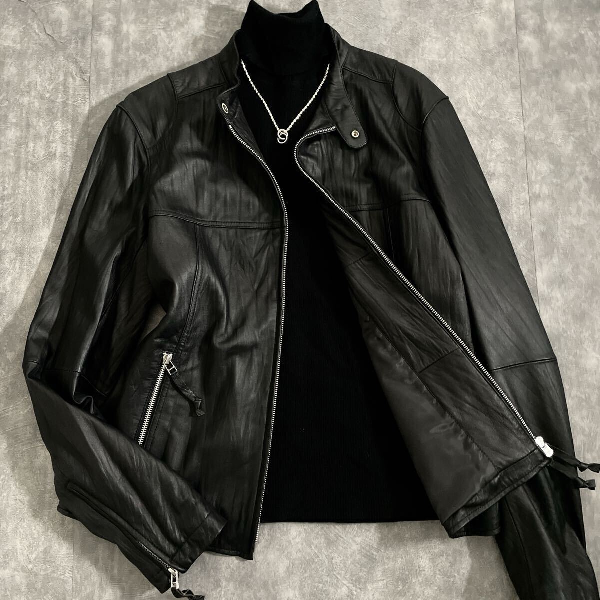 しなやかなラムレザー特有の柔らかさと光沢感が魅力で、着込むほどに味わいが増す一着です。