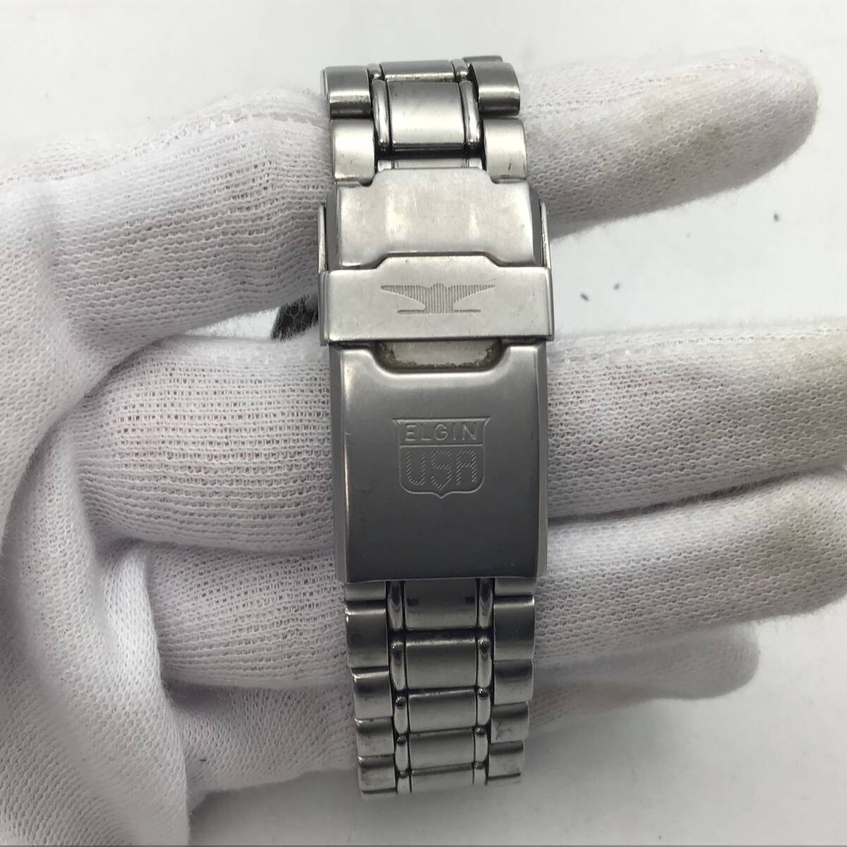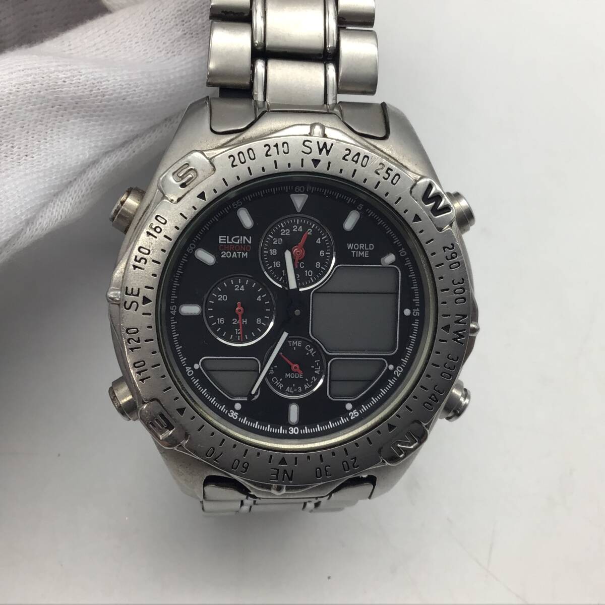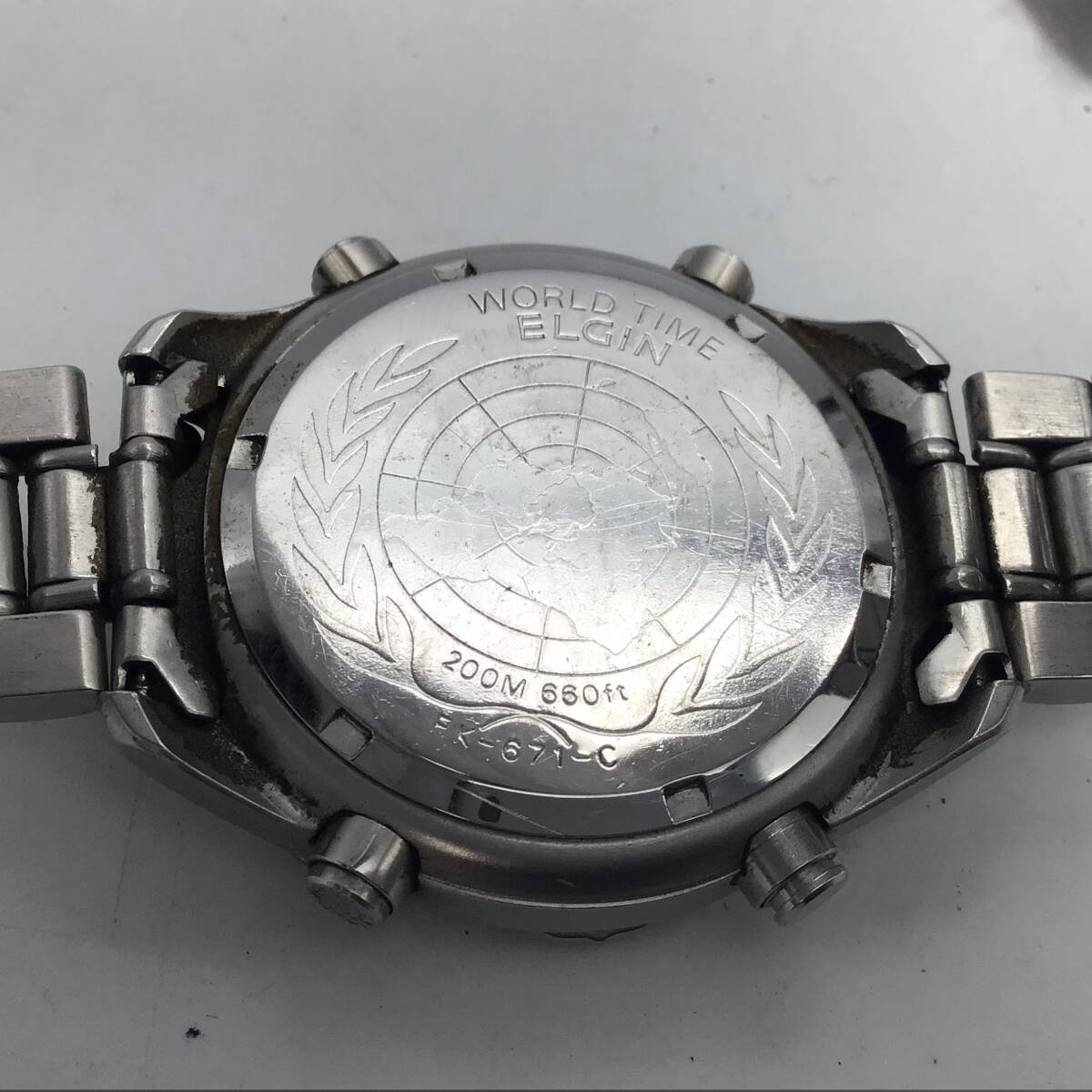 #2052 ELGIN CHRONO 20ATM エルジン メンズ クォーツ 腕時計 FK-671-C 不動 シルバーカラー系 デジアナ クロノグラフ コレクション 小物