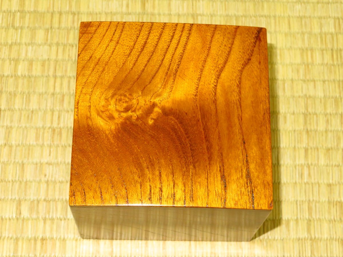 木地は駒箱材の最高峰、島桑(御蔵島産の桑)。拭漆仕上げ。素材の良さを生かして野趣に重きを置く、味わい(詫び)重視の作風です。