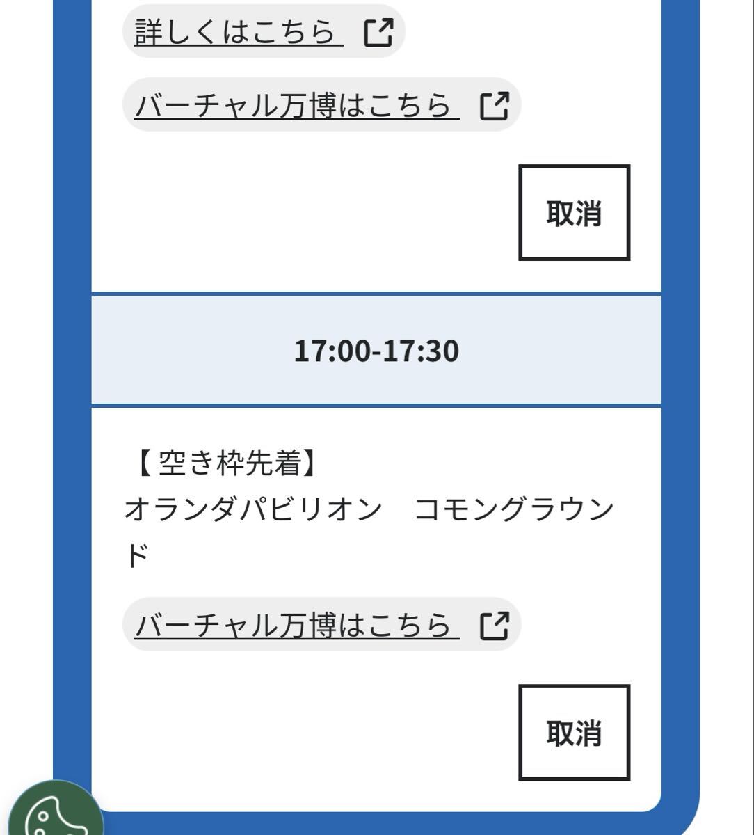 17:00〜17:30 オランダパビリオンの予約も追加で取ってあります。