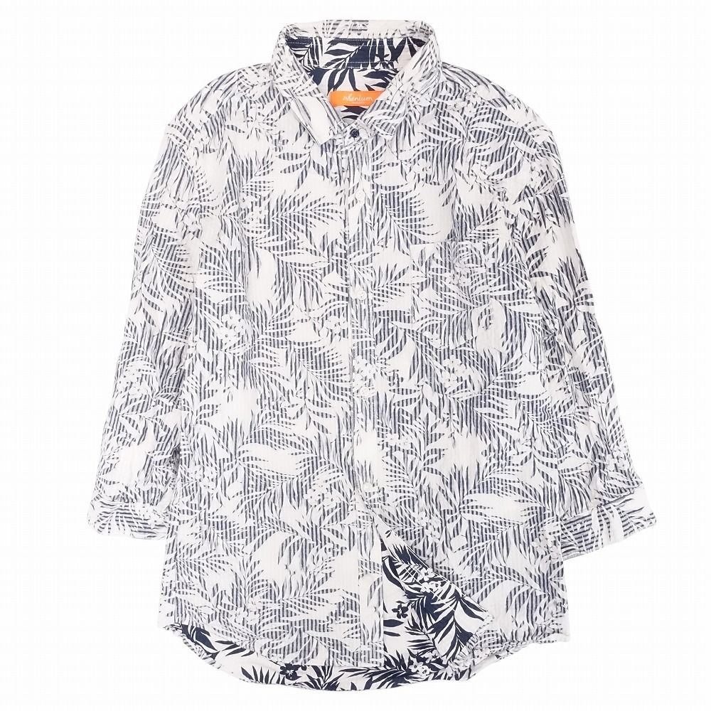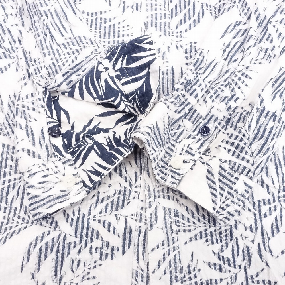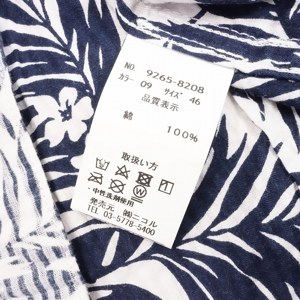 【HIDEAWAYS NICOLE ハイダウェイニコル シアサッカー地 シャツ 七分袖 花柄 ボタニカル柄 ワイヤー衿 46 M ネイビー メンズ】 | |