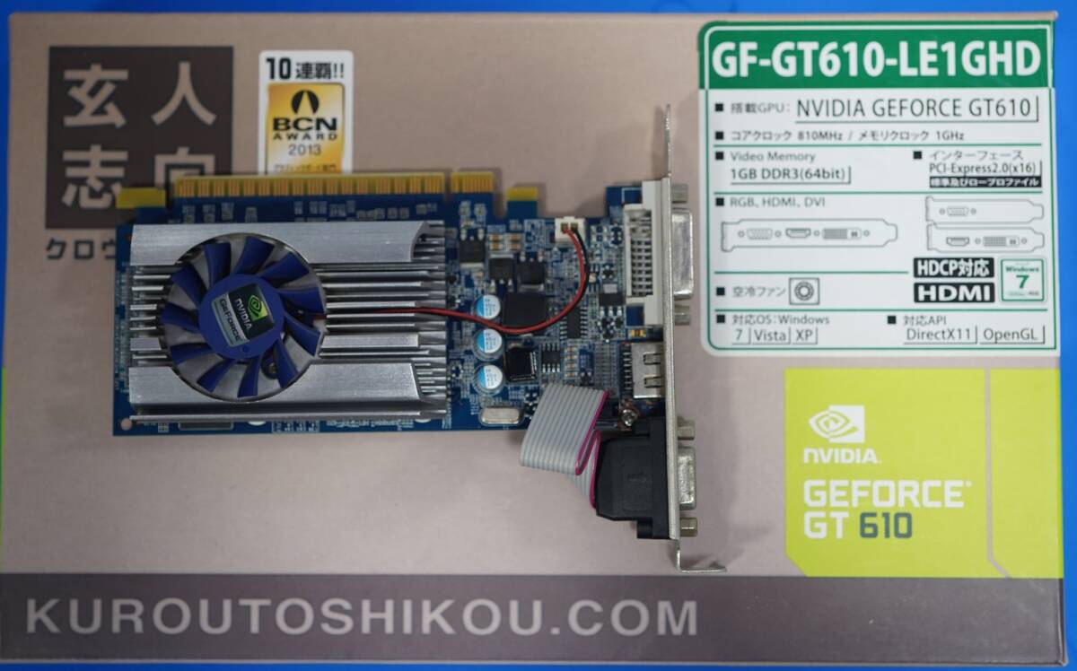 Nvidia GF-GT610-LE1GHD Geforce GT610 玄人志向 ビデオカードです。