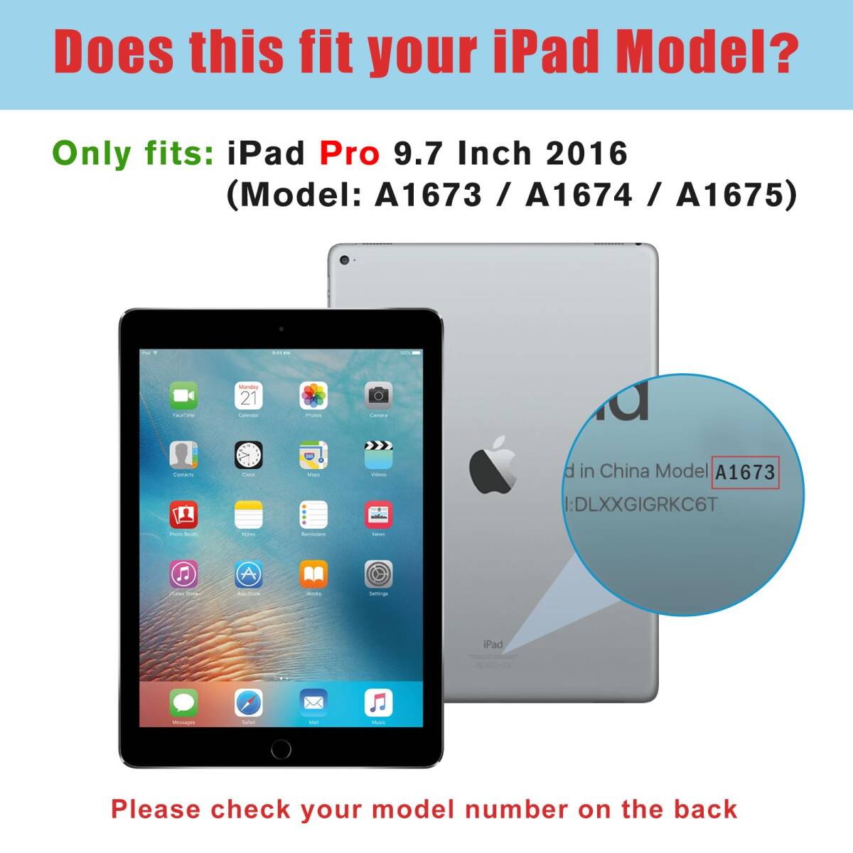 対応端末:2016 iPad Pro 9.7"(A1673 A1674 A1675)のみ、その他の型式に適用されません。ご購入前、ご設備のモデル番号をご確認ください。