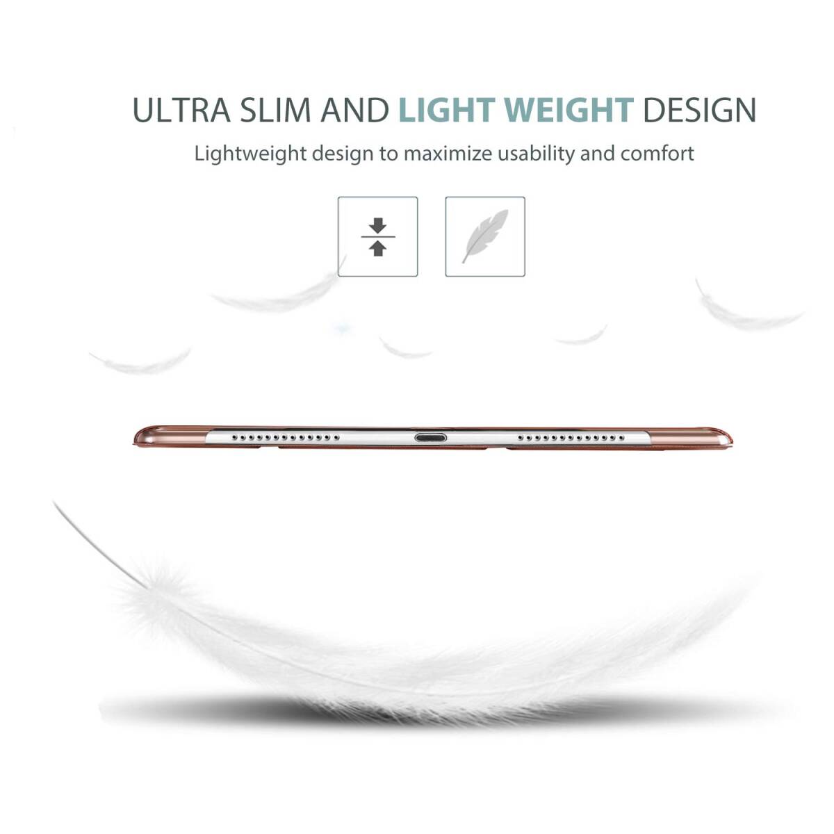 超スリムで軽量なハードバックデザインにより、最小限の重さを追加する前提にiPadを保護します。