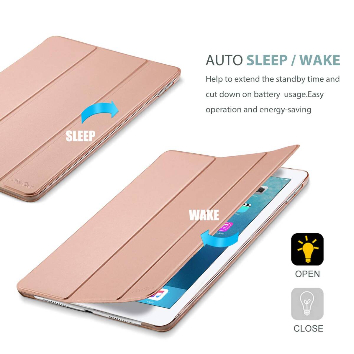 ProCase iPad Pro 9.7"ケース スマート 超スリム スタンド フォリオ保護ケース 半透明フロスト バックカバー 対応機種: iPad Pro 9.7" 2016 (A1673 A1674 A1675) - ローズゴールド