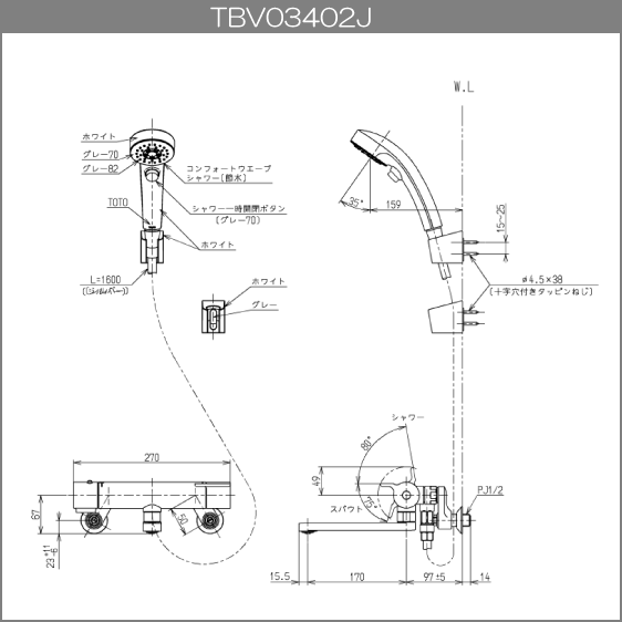 ■ 吐水パイプ長さ:170mm