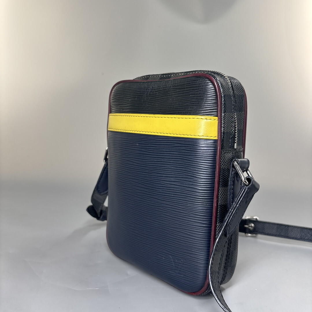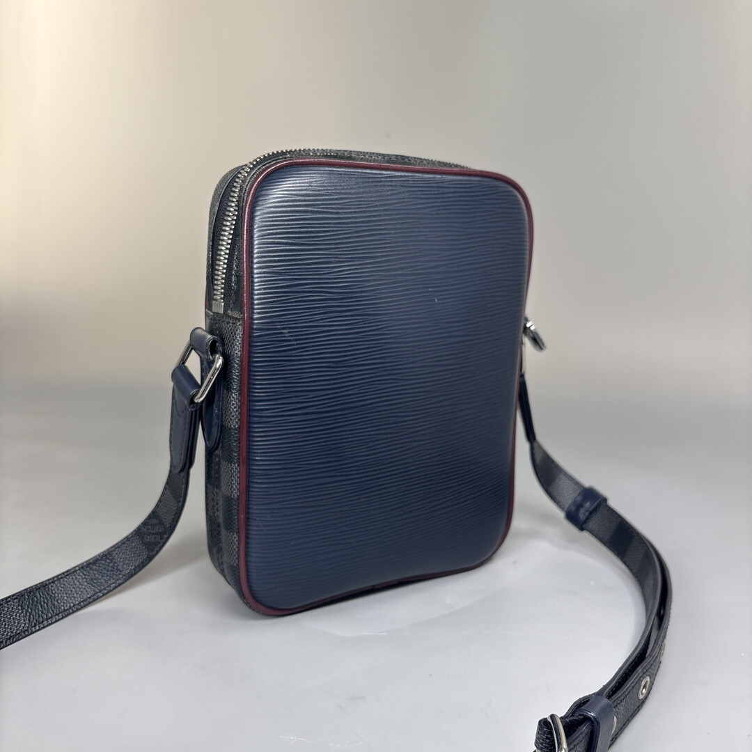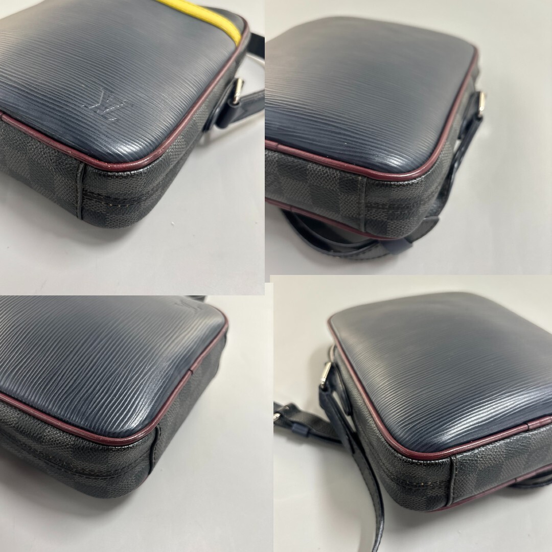 1円 極美品 Louis Vuitton ルイヴィトン ショルダーバッグ ダミエ・グラフィット エピ ダヌーヴ スリム M55100 ブラック ネイビー メンズ
