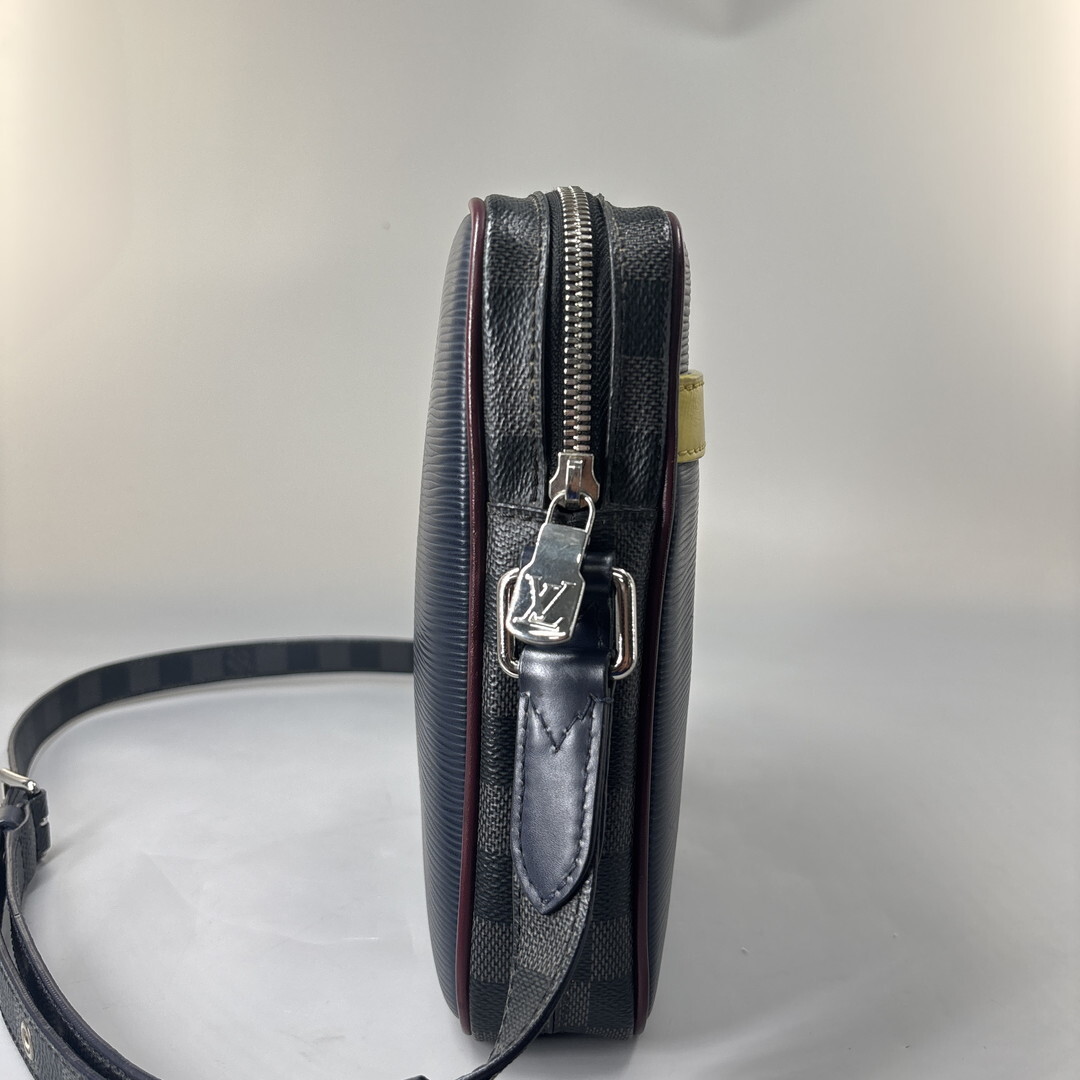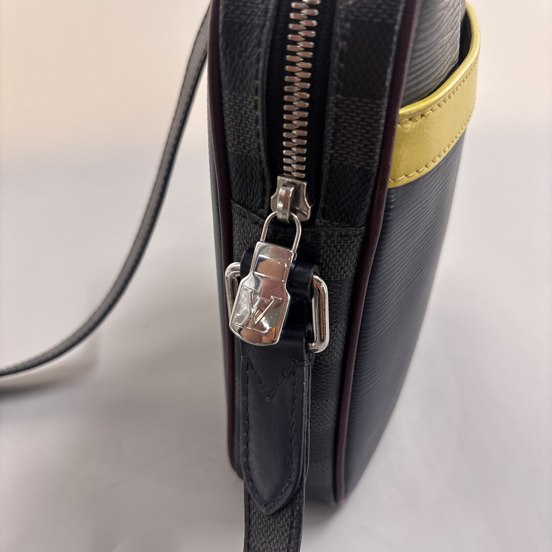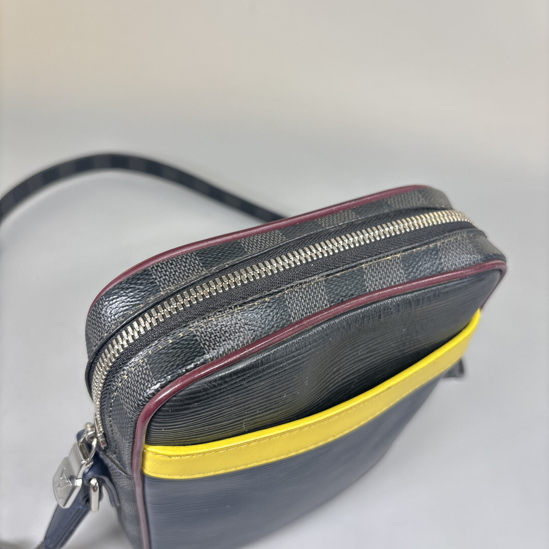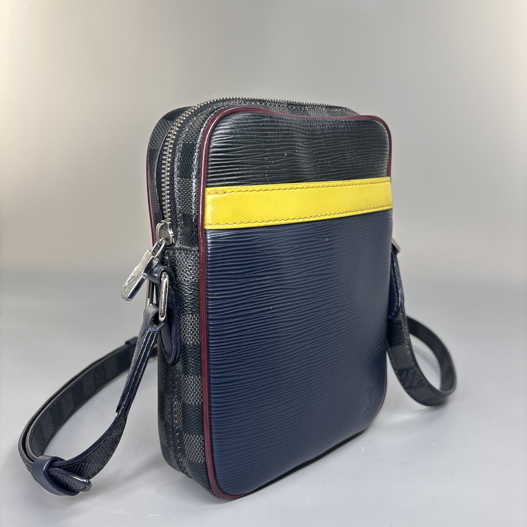 1円 極美品 Louis Vuitton ルイヴィトン ショルダーバッグ ダミエ・グラフィット エピ ダヌーヴ スリム M55100 ブラック ネイビー メンズ
