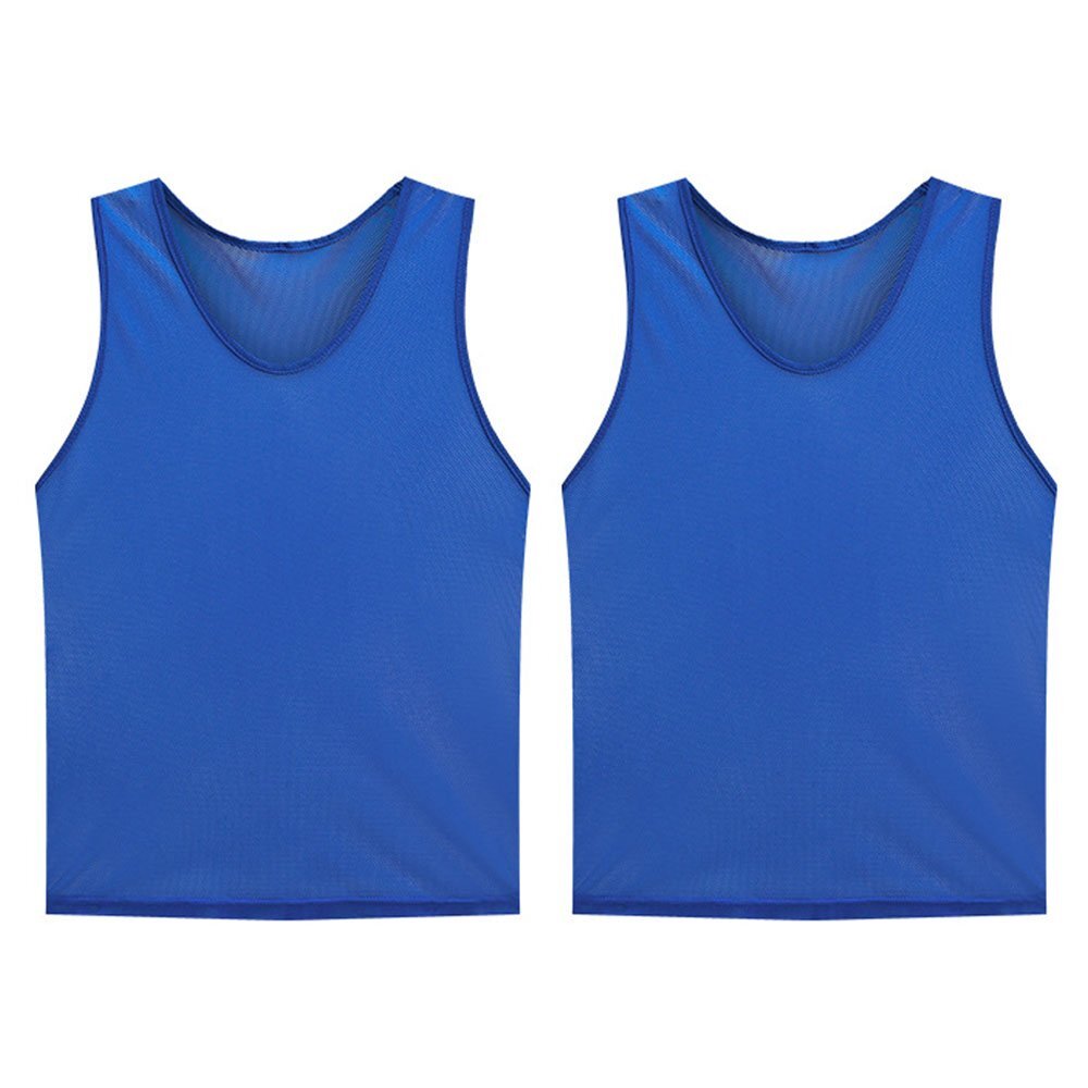 ◆ゼッケンベスト 2枚セット ビブス メッシュ 無地 サッカー バスケ フットサル 運動会 リレー スポーツ イベント ボランティア チーム分け 色分け 子ども用 大人用【大人用ブルー】BIBVS02S