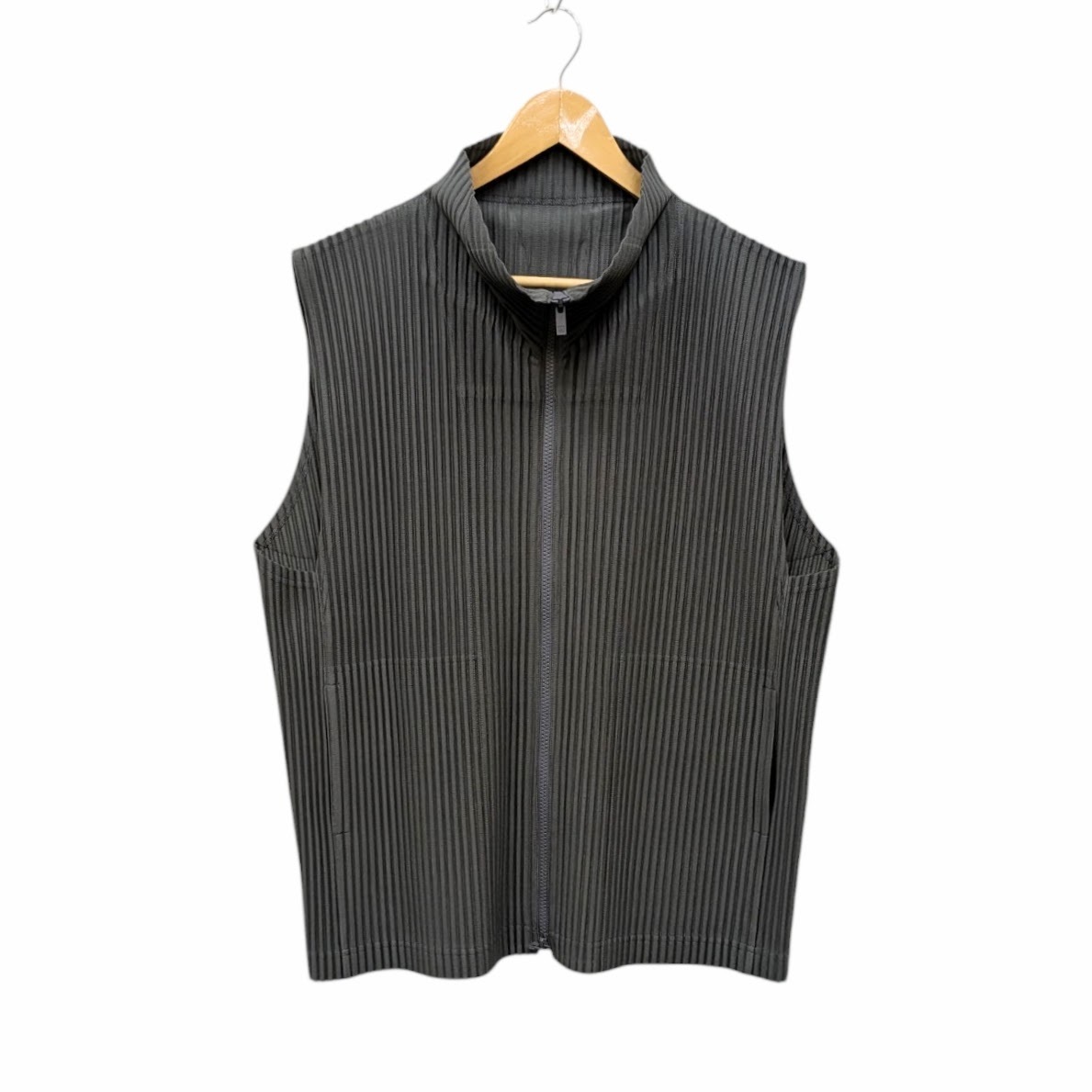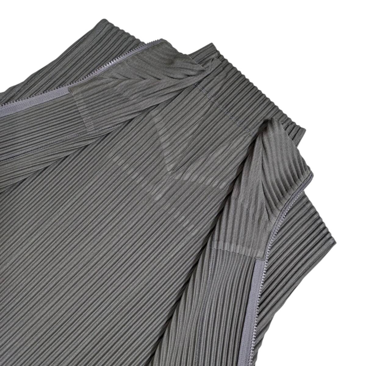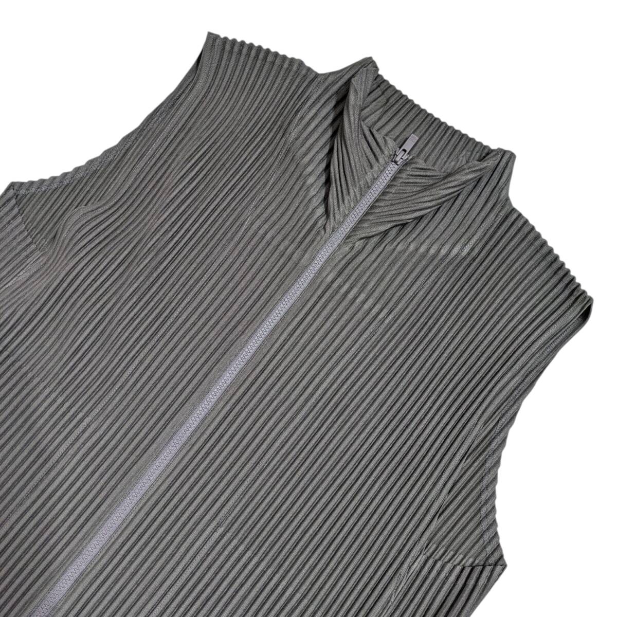 美品 HOMME PLISS ISSEY MIYAKE MONTHLY COLOR MARCH オムプリーツ イッセイミヤケ 前開きジップベスト グレーカーキ サイズ 3