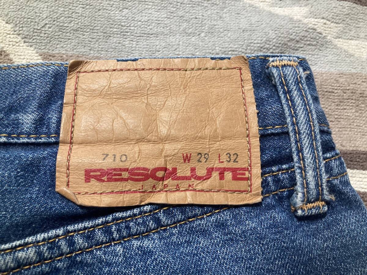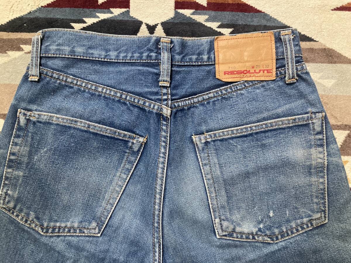 商品名:RESOLUTE 710 デニムパンツ サイズ:表記W29 平置きW36cm×2 L(股下)72cm (股上)27cm サイド全長96cm 裾幅19cm×2※素人採寸の為多少の誤差はご了承下さい。 カラー:インディゴ 状態:MADE IN JAPAN。コットン100%。ボタンフライ。ポケット×5。セルビッチ。裾=チェーンステッチ。幾分かの使用感、小傷等ありますが目立ったダメージ無く雰囲気良いと思います。 発送方法:レターパックプラス(配達記録付600円)。 ※古着になりますので神経質な方、ご理解の無い方の御入札はお控えください。送料、振込手数料は落札者様の御負担となります。ノークレーム、ノーリターンでお願い致します。