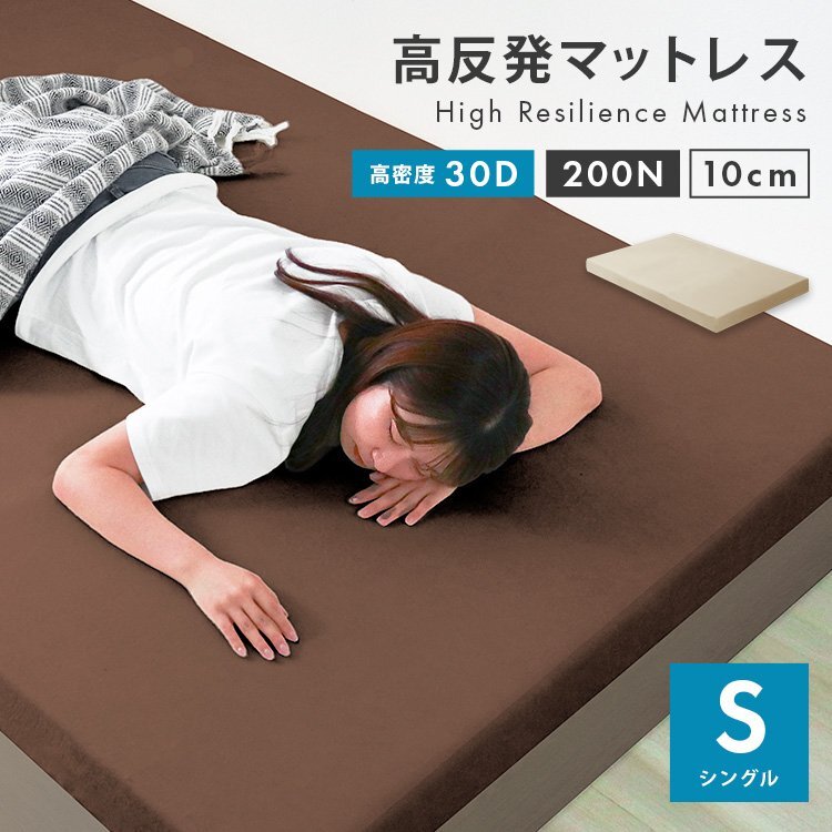 高密度30D!こだわりの硬さ200N! 厚みたっぷり10cm! 適度な硬さで身体をしっかり支える、高反発マットレスです。 柔らかいマットレスとは違い、身体の沈み込みを軽減した腰に優しい寝心地です。 高反発マットレスのウレタンフォームは弾性が高く、適度な硬さで身体を支えるので、底つき感もなくへたりにくいマットレスです。 寝返りが多い方や仰向けに寝ることが多い方におススメです。 取り外しやすいL字ファスナー付き洗えるカバーが付属しています! 【商品仕様】 カラー:ベージュ サイズ(約):幅97cm×長さ195cm×厚み10cm(シングルサイズ) 梱包サイズ(約):(約)53.3×36×36.5cm 重量(約):(約)7kg 素材:高反発ウレタン(密度30D(30kg/m3)) 、パイル生地 他 硬さ:200ニュートン ※耐熱仕様ではございませんので、電気毛布との併用はおやめください。 (マットレス シングル セミダブル ダブル 高反発 低反発 高反発マットレス 低反発マットレス 4cm 8cm 10cm シングル 高反発マット 低反発マット マット ベットマット ベッド 敷き布団 洗える カバー 寝具 人気 おすすめ ) |
